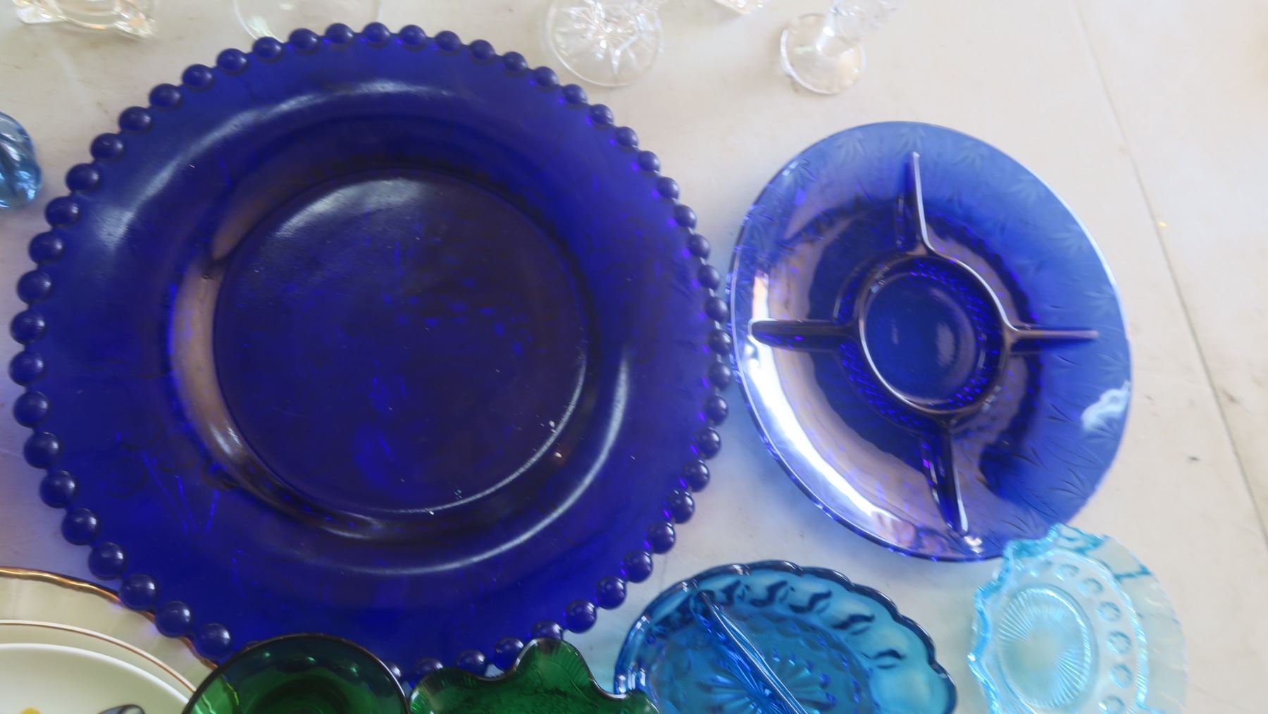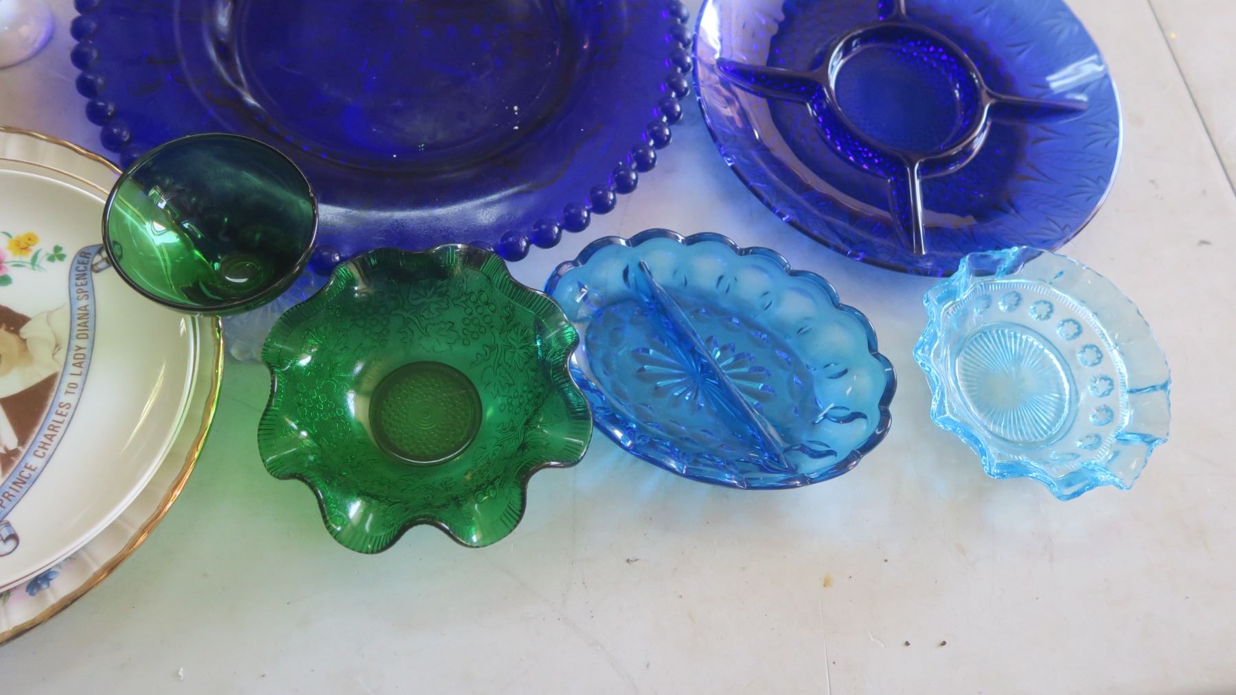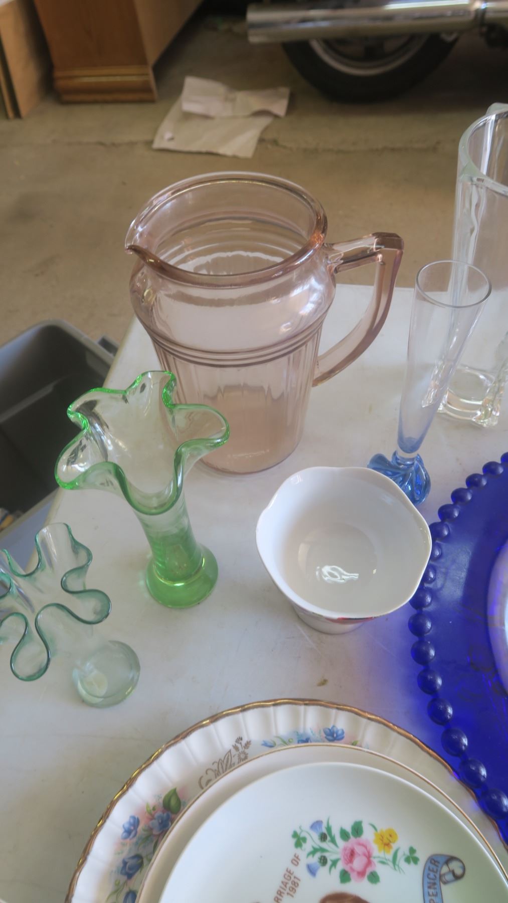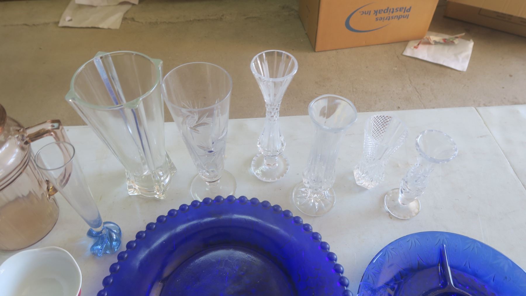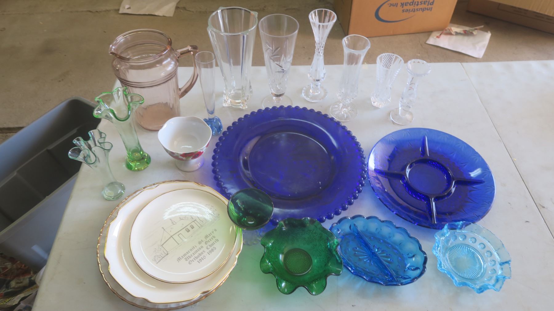 assorted glassware vases - colored, pressed