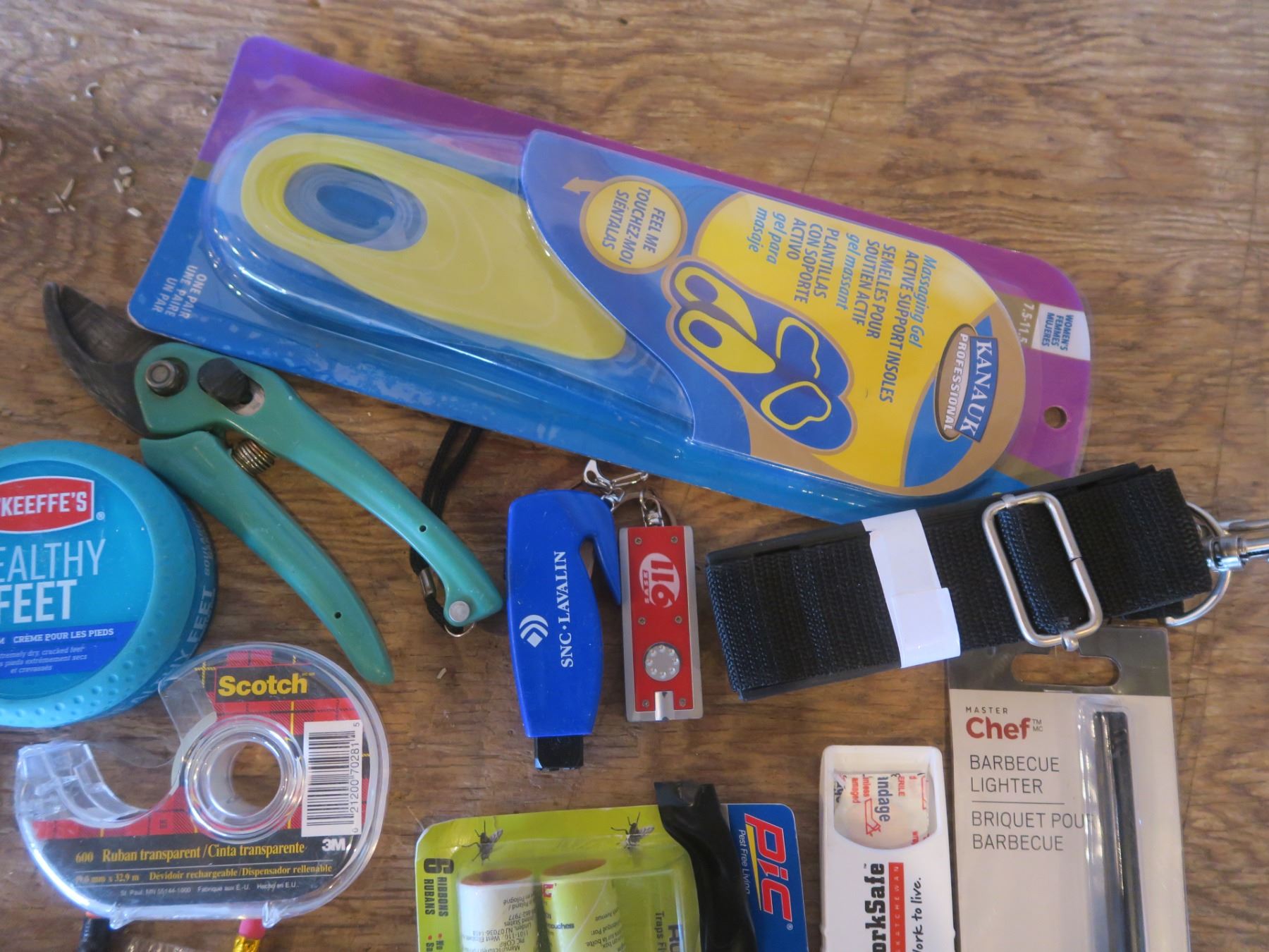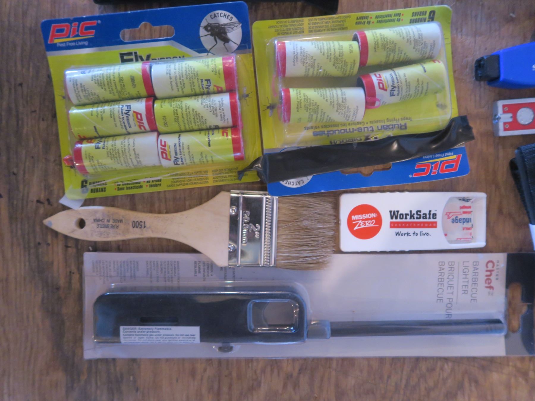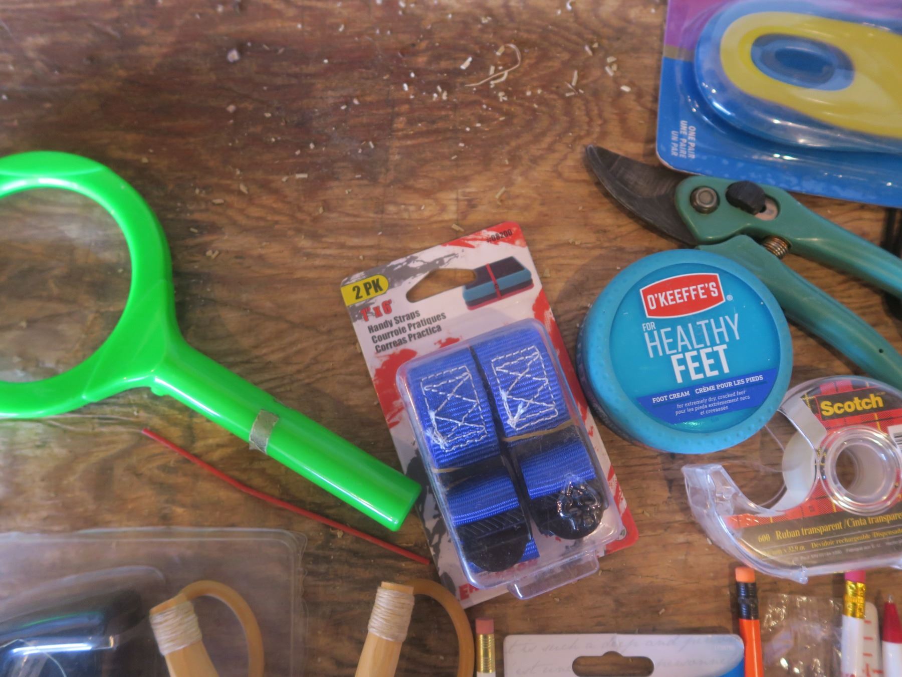 assorted lot - knife sharpener, slingshot, pens, fly traps, etc.