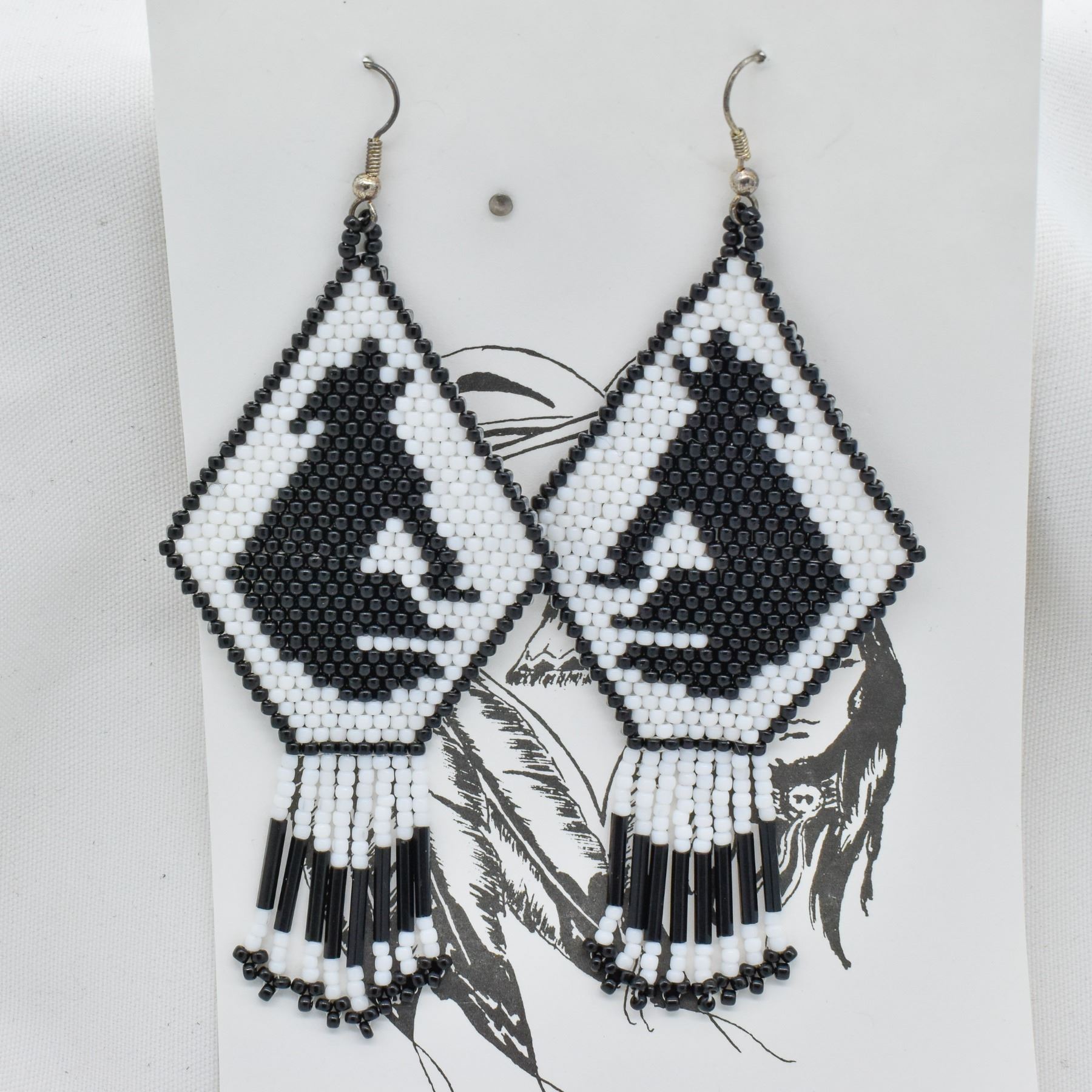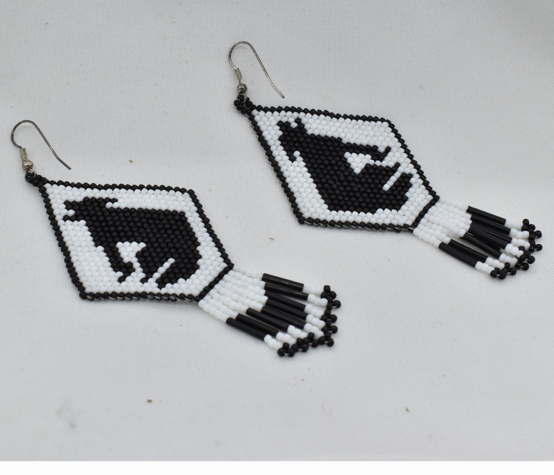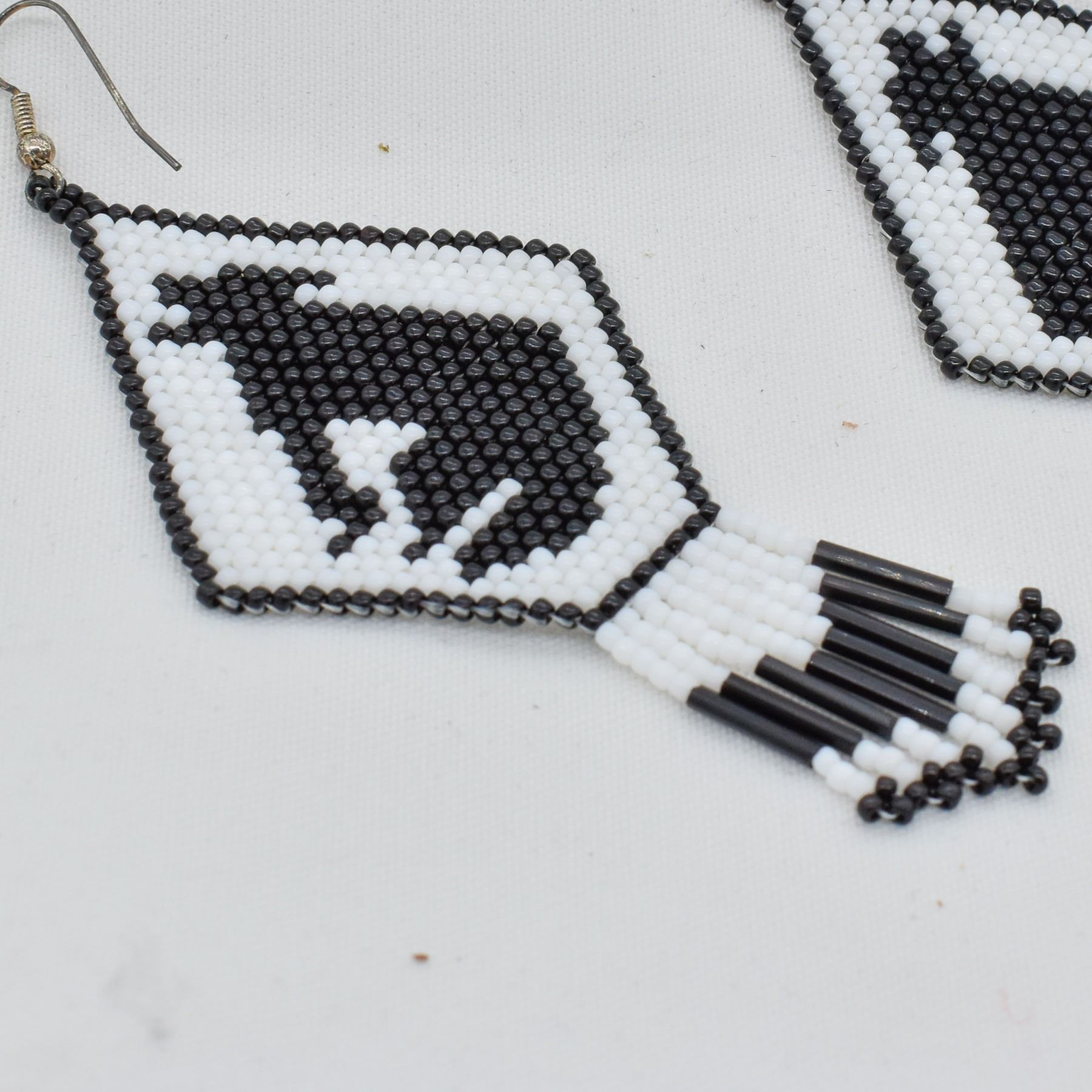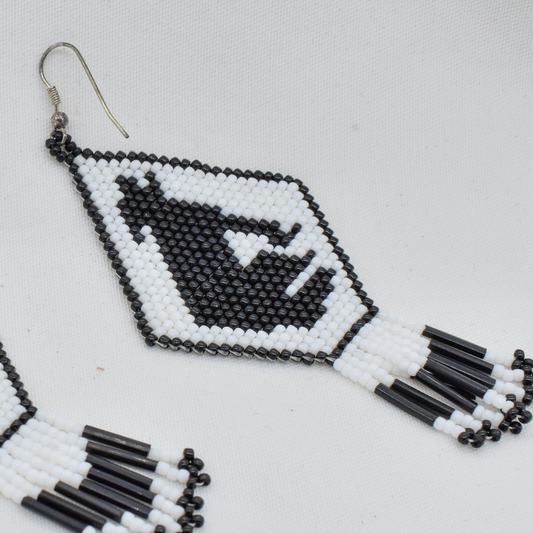 Native American Navajo Beaded Howling Wolf Earrings by Melinda Largo, measures 4.5"L which includes the wire x 1.75"W