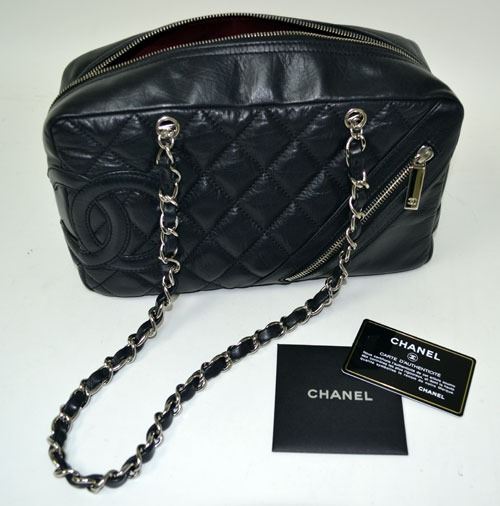 authentic designer channel black quilted leather purse