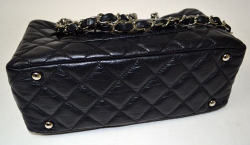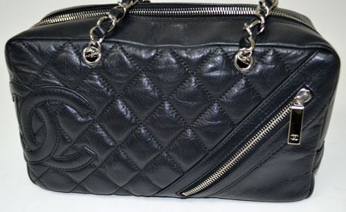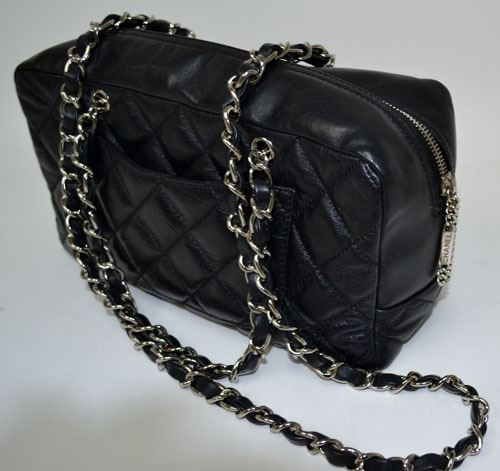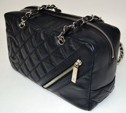 authentic pre-owned designer channel black quilted leather carbon ligne bowler shoulder bag.
