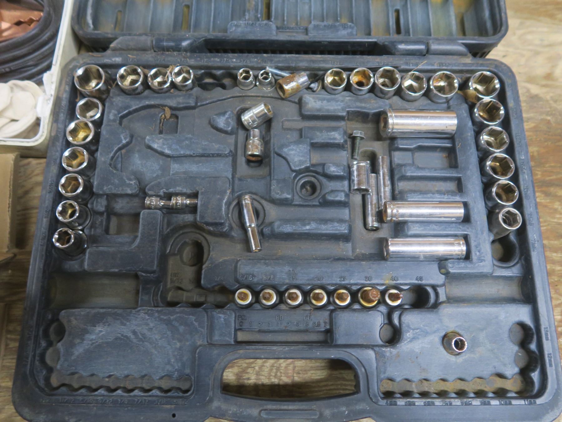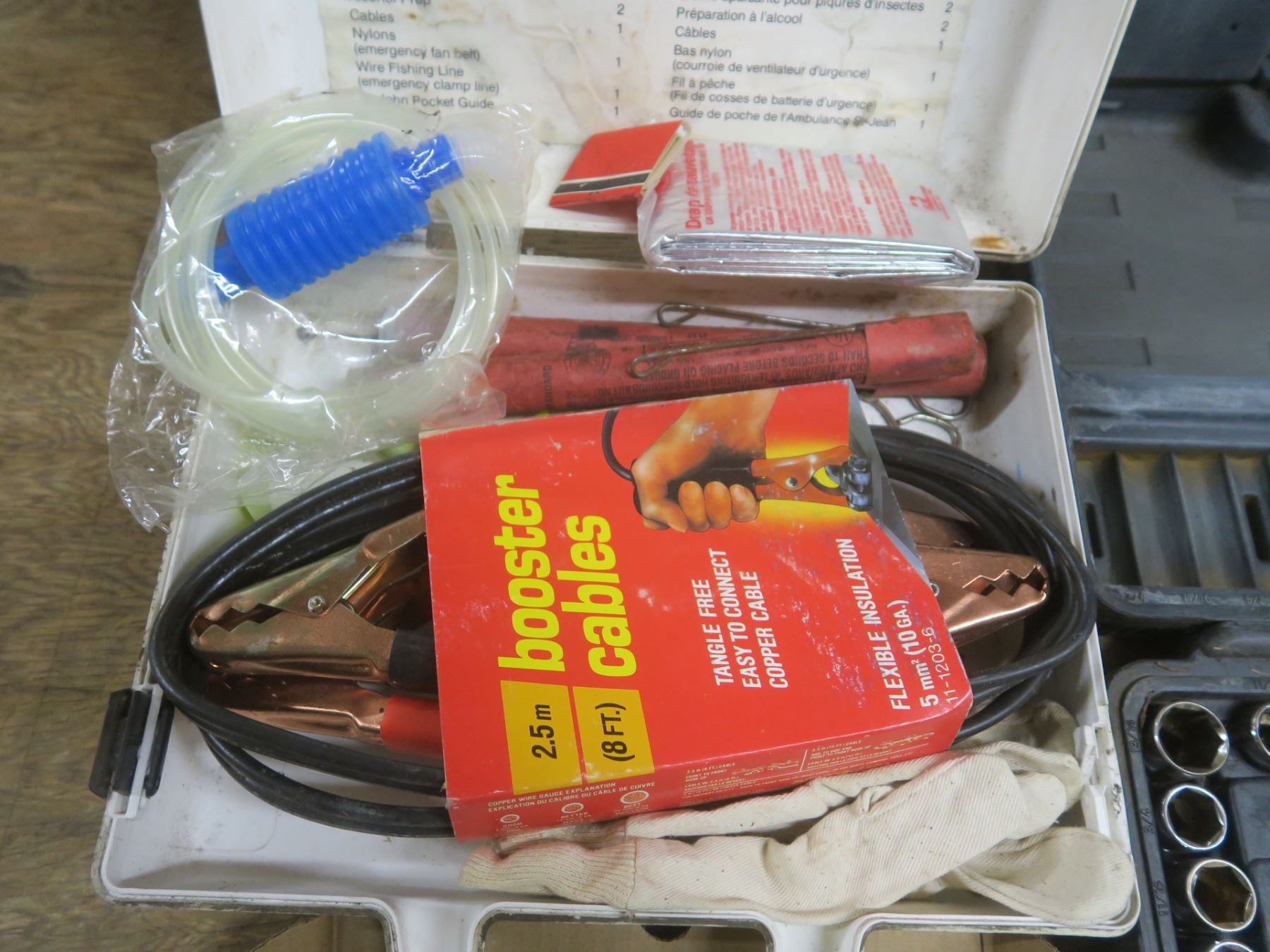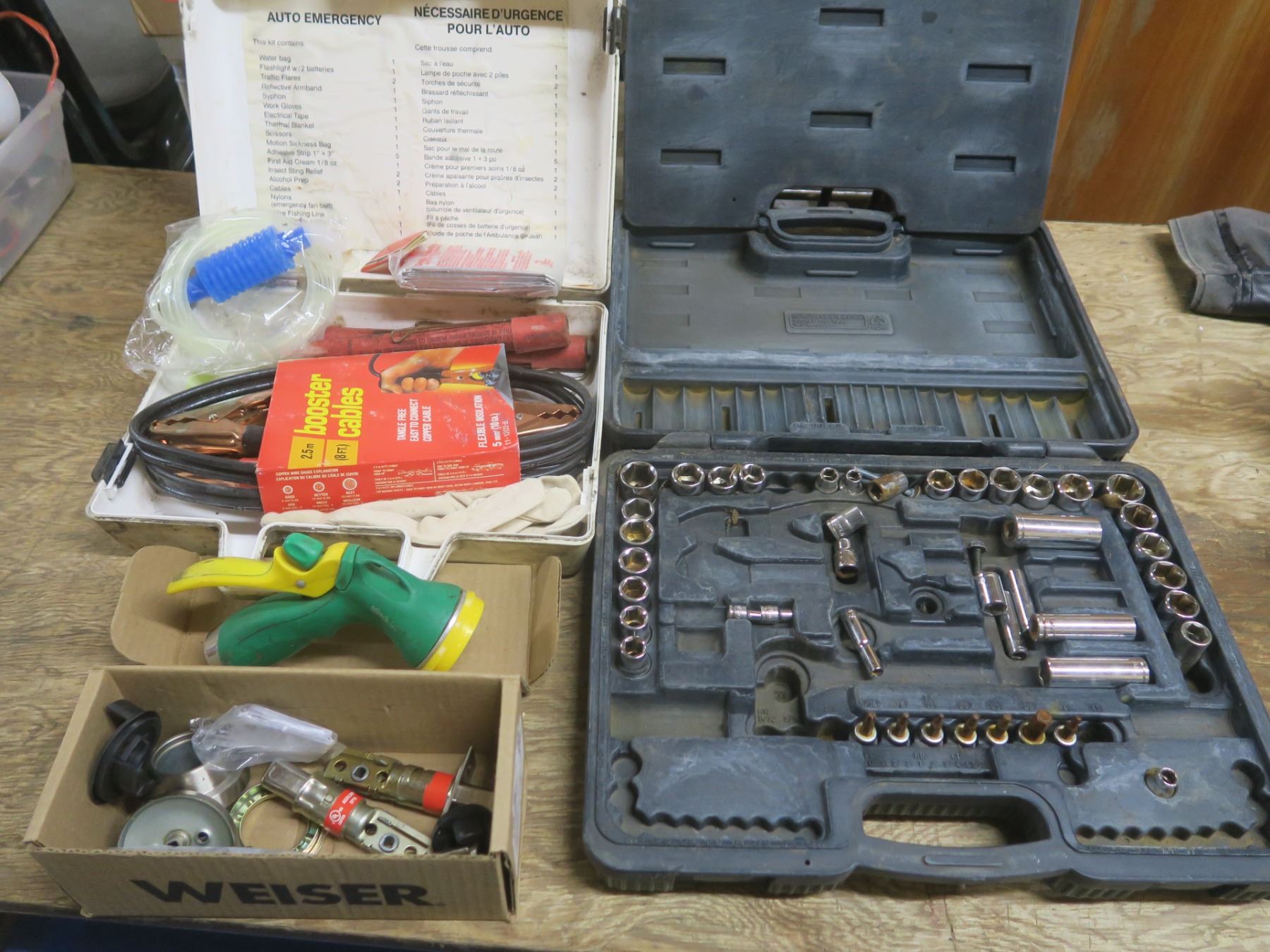 auto emergency kit, partial socket set and hardware