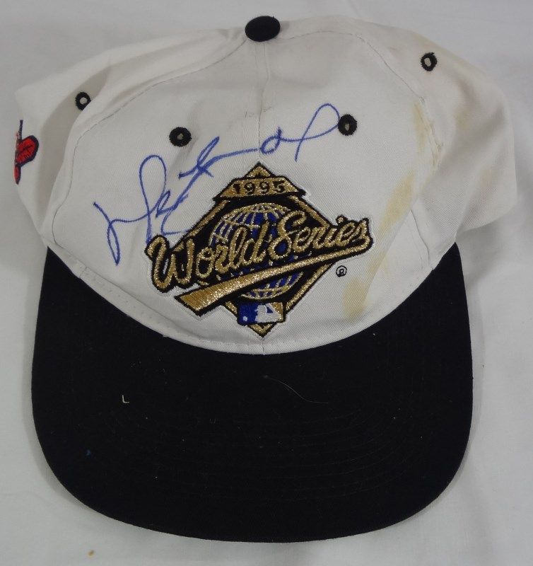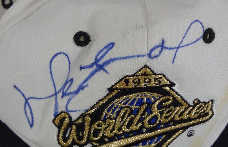 autographed 1995 WORLD SERIES CAP, UNIDENTIFIED CLEVELAND INDIANS, lightly stain
