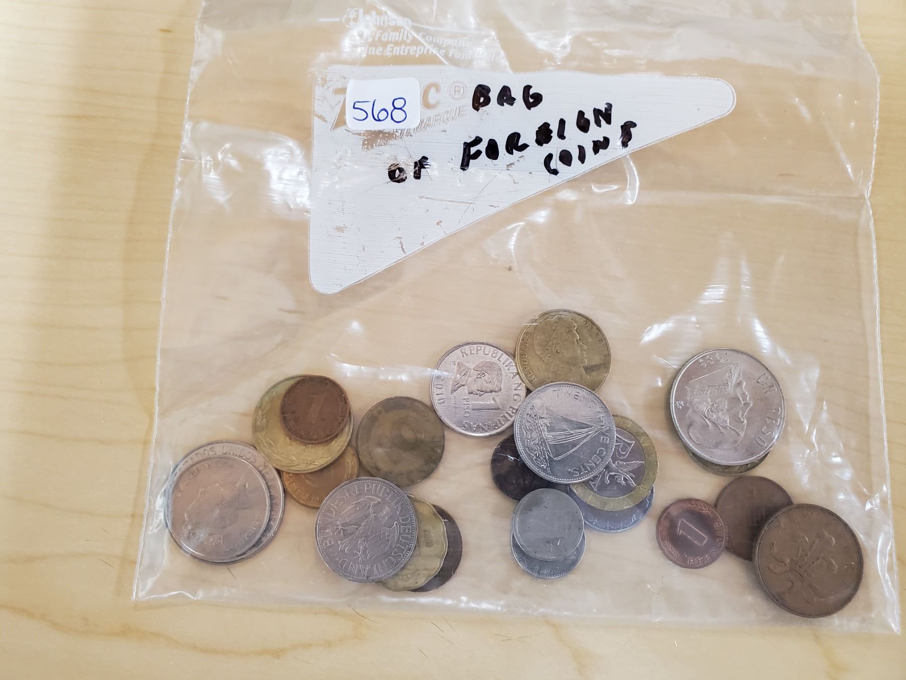 bag of foreign world coins