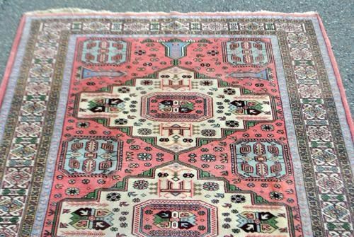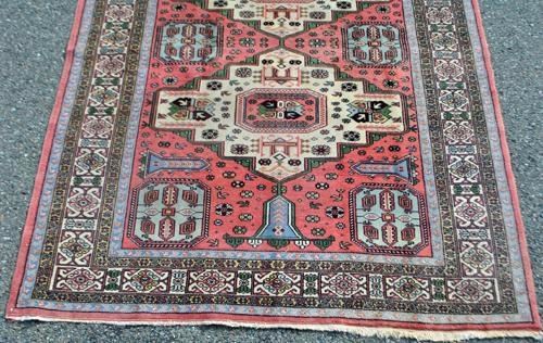 simply lovely fine ardabil rug made of all natural, vegetable dye, hand woven, baby lamb's wool pile on cotton foundation. the is a rare and charming ardabil. the highest quality wool has been used weaving this enchanting piece. moreover, this piece is adorned with a charming collection of geometrical objects. size5.8 x 7.9 feet. handwoven inardabil, iran.