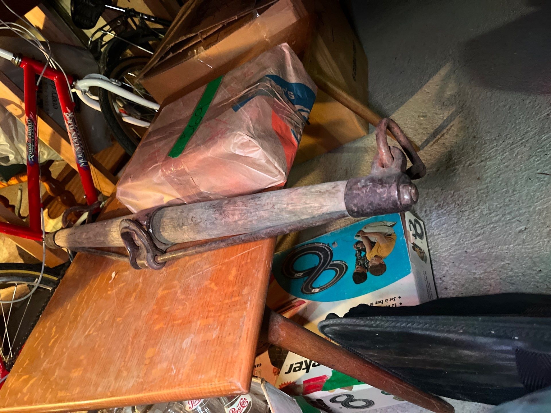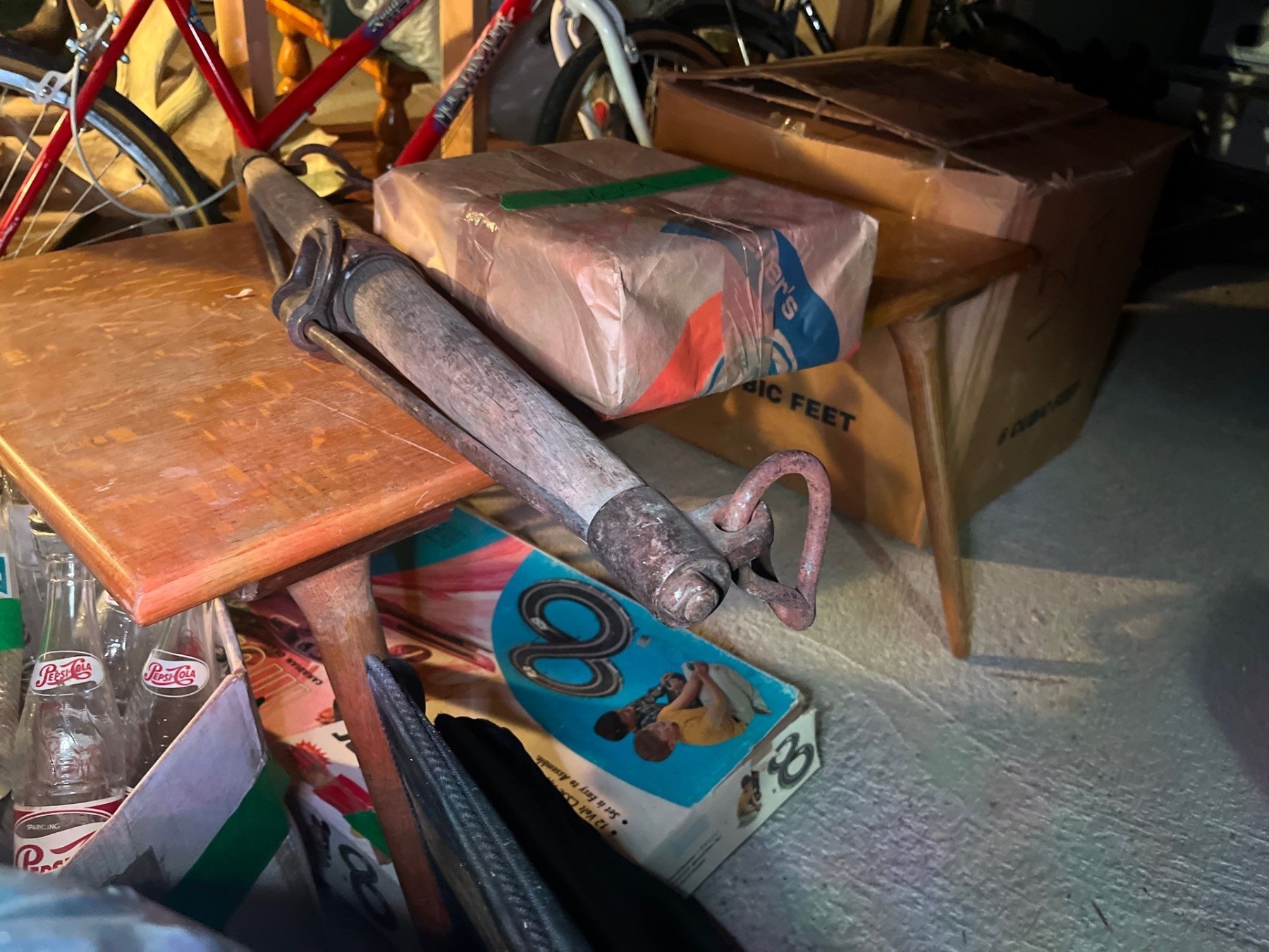 beautiful wood coffee table with antique horse pull, along with un researched magazines from 1951
