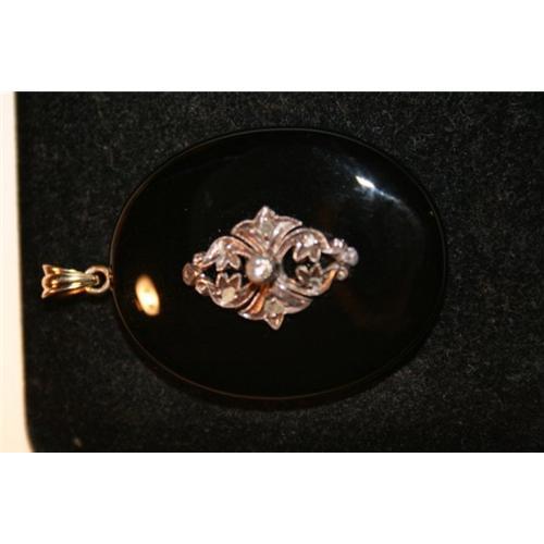 <tr><td>Title:black onyx pendant with diamonds 19thc</td></tr>