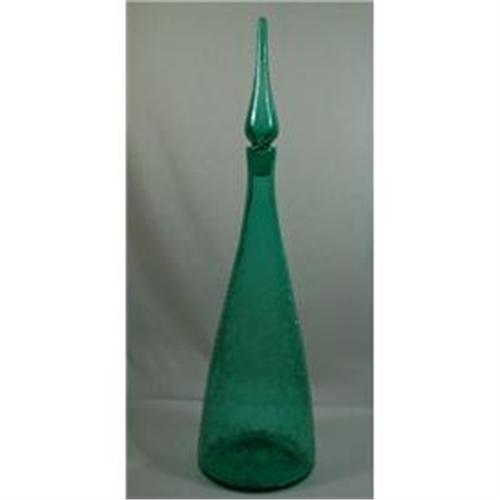 Monumental Blenko Crackle Glass Decanter #920 that was designed by Winslow Anderson. He was witih blenko from 1947- 1953. This decanter is huge, it measures 22 1/2 to the top and is 6" across at the base. The crackling is done extremely well. The decanter still retains the original Blenko store label on the bottom. Original solid tear-drop stopper that fits perfectly. All hand blown.