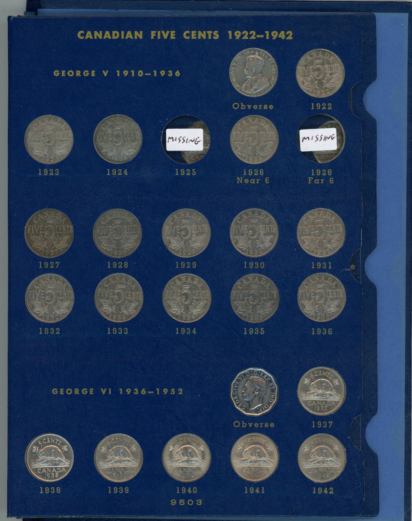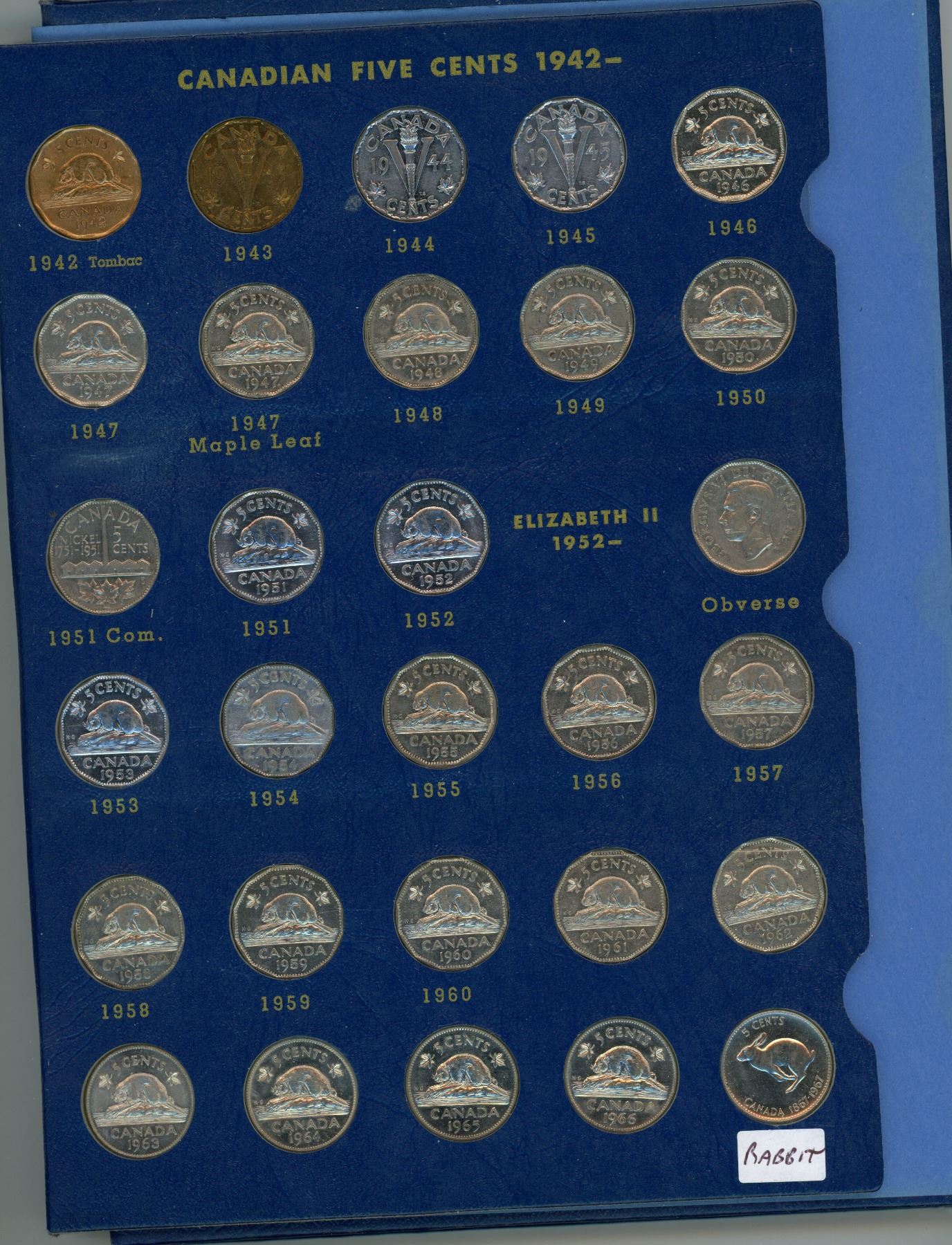 blue book of large nickels-1922 to 1967( rabbit)- missing 1925 & 1926 ( far "6") dimes