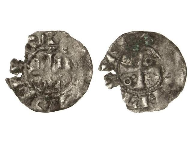 Òbol. GAUSFRED III. COMTAT DE ROSSELLÓ. Anv.: (ROSI)LONVS. Cruz sobre pie entre C-O y N-T. Rev.: (GA)VFREDVS. Cruz interior patada con alfa y omega en 2º y 3er espacios. (Cospel algo irregular). Cru.VS-1141. MBC-.