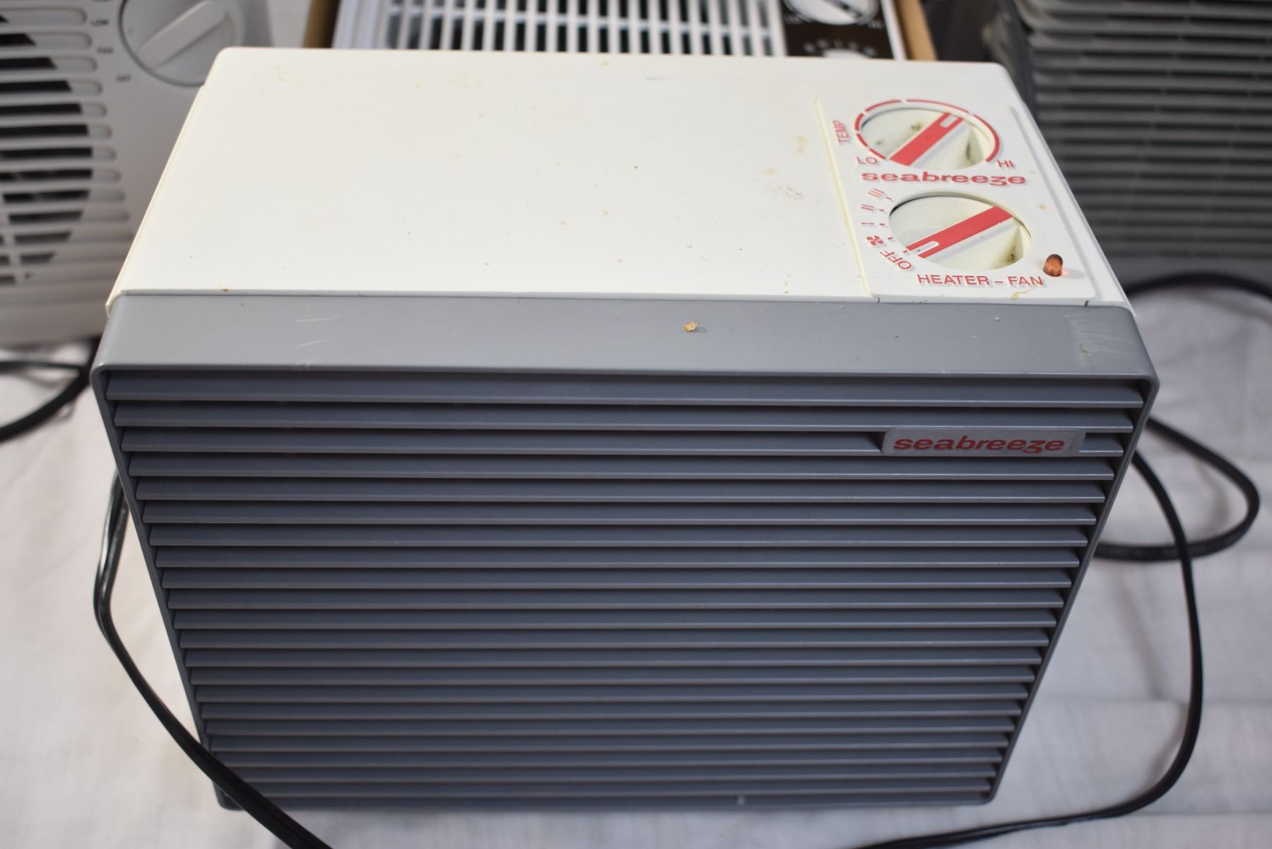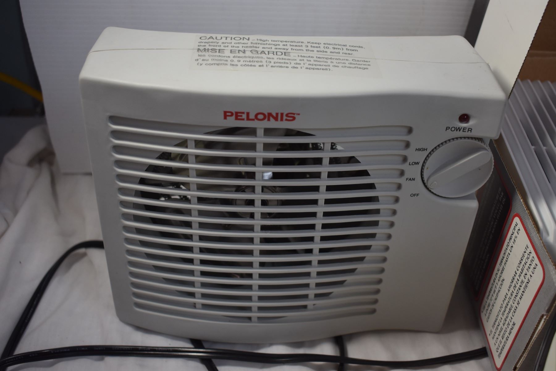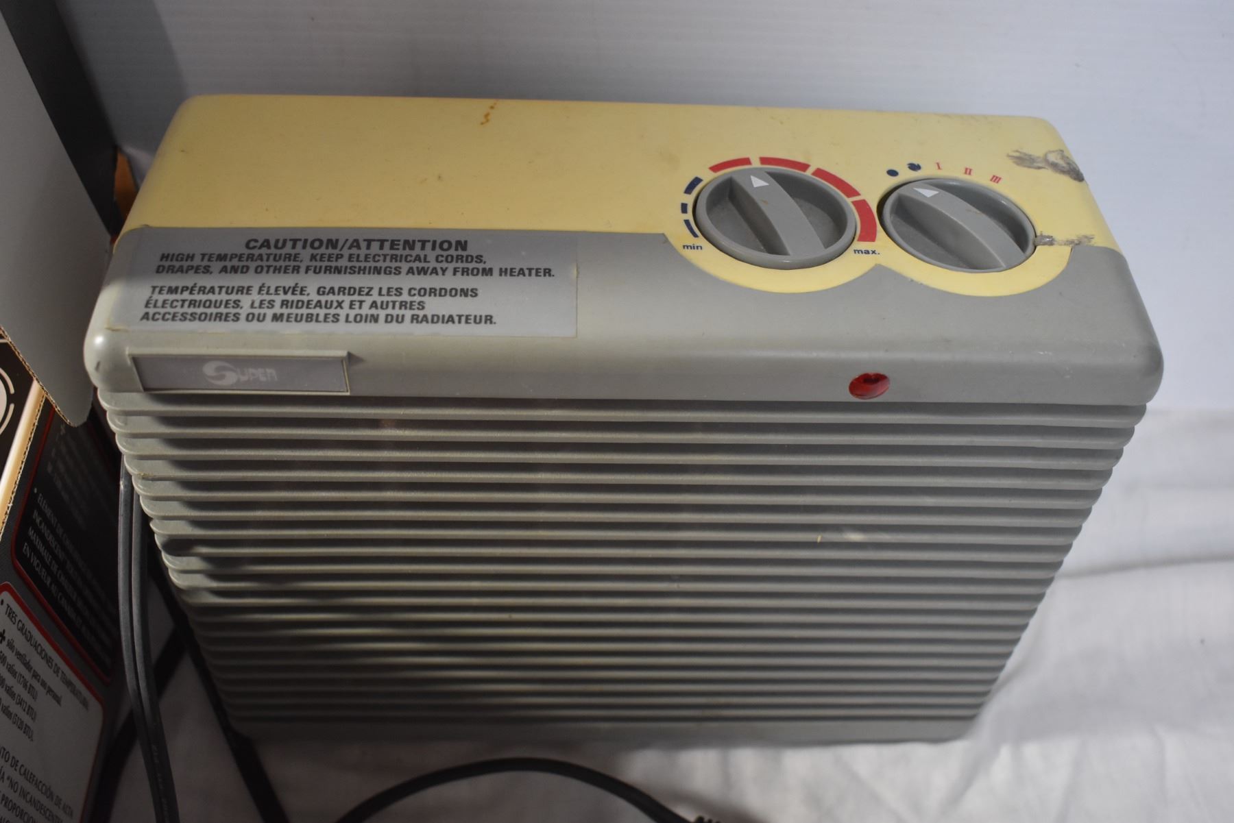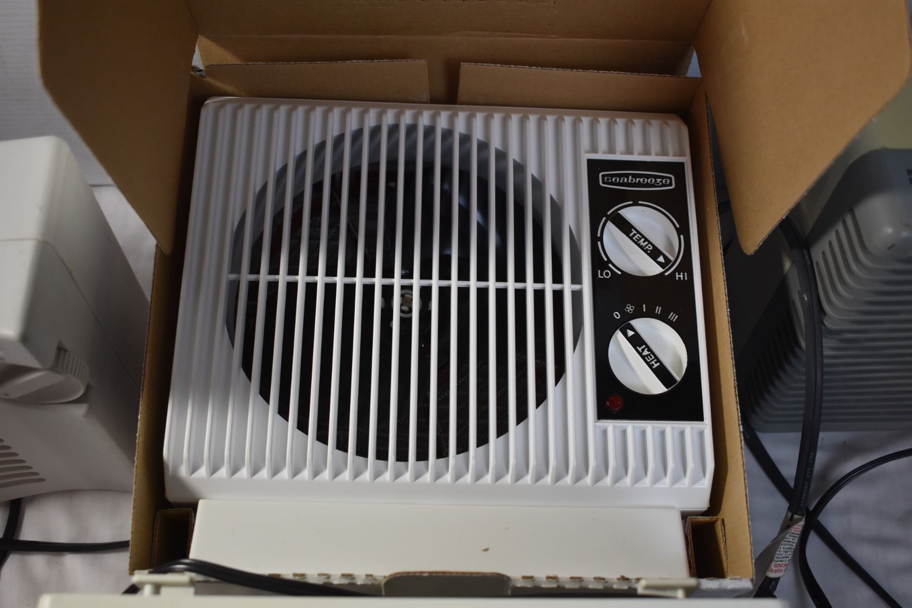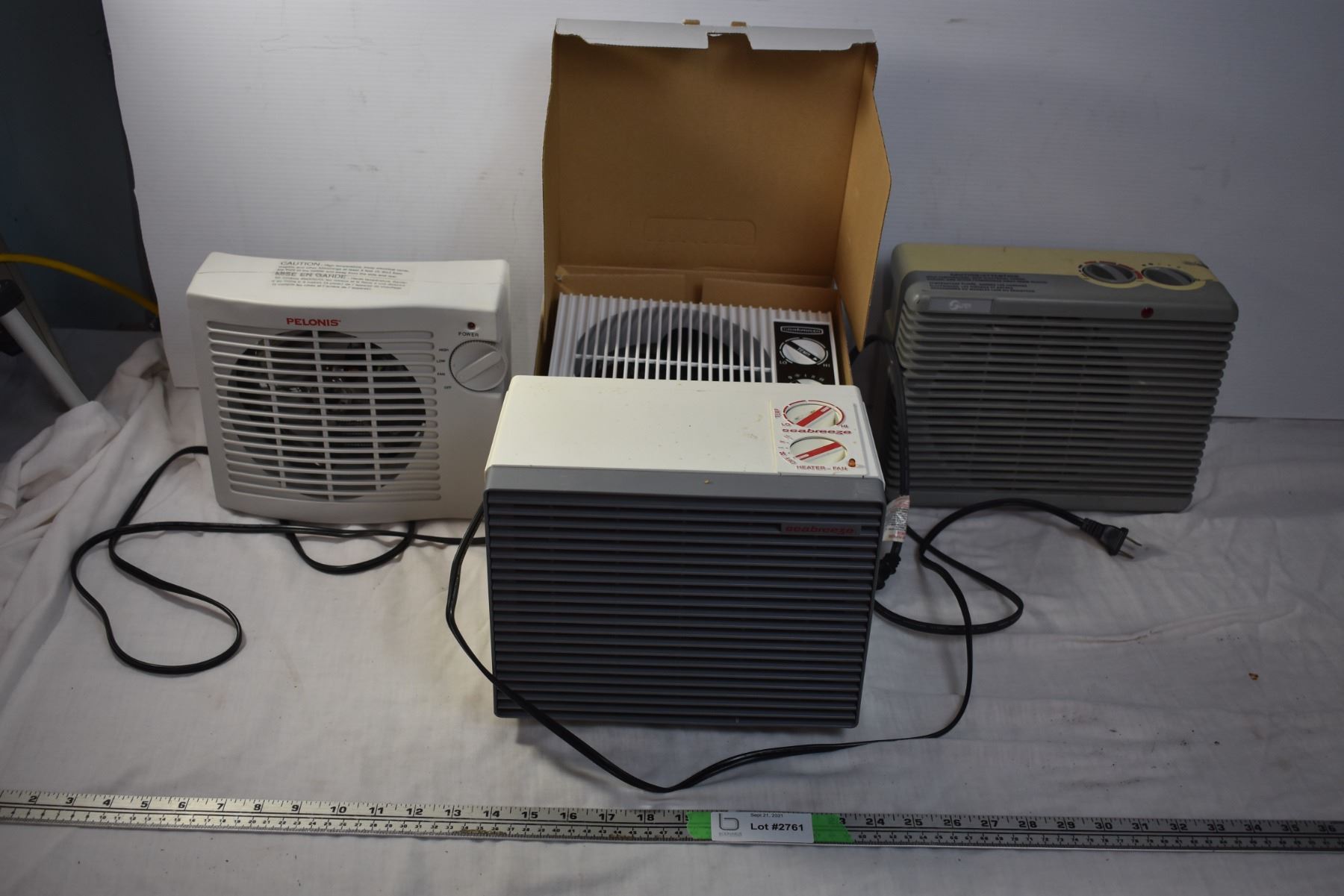 box of 4 electric heaters - all power on/fans work, one appears new unused