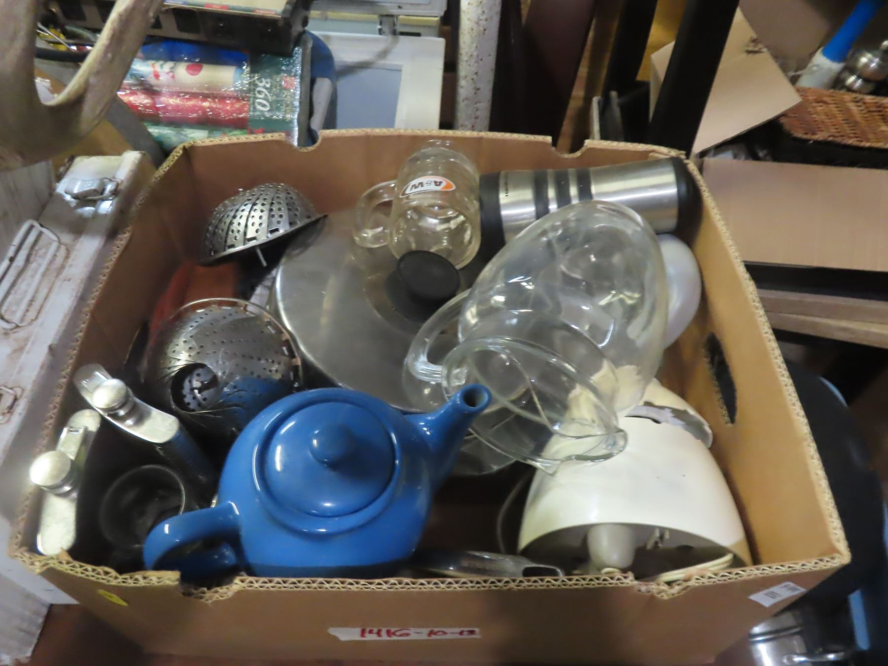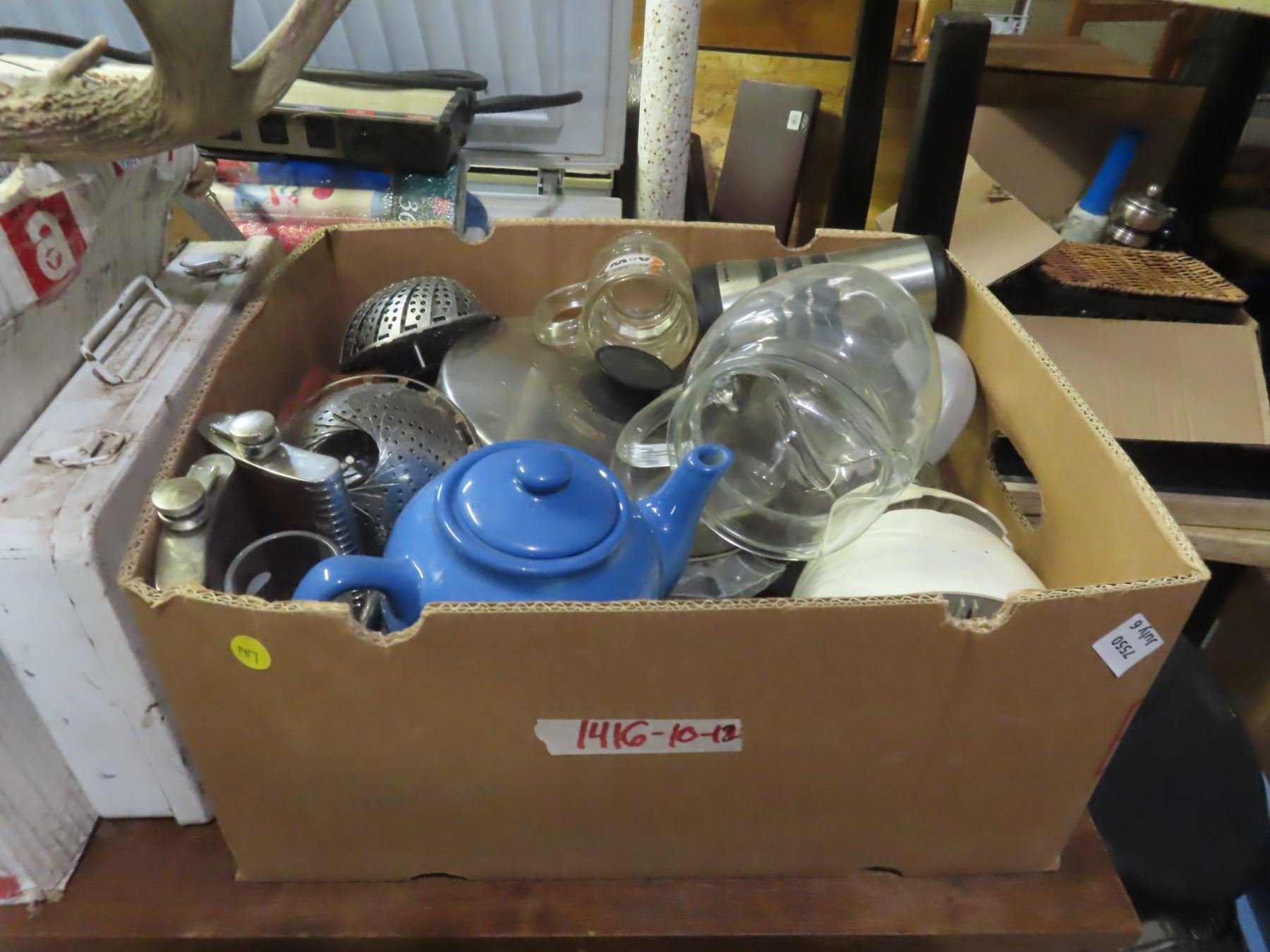 box of assorted kitchenware