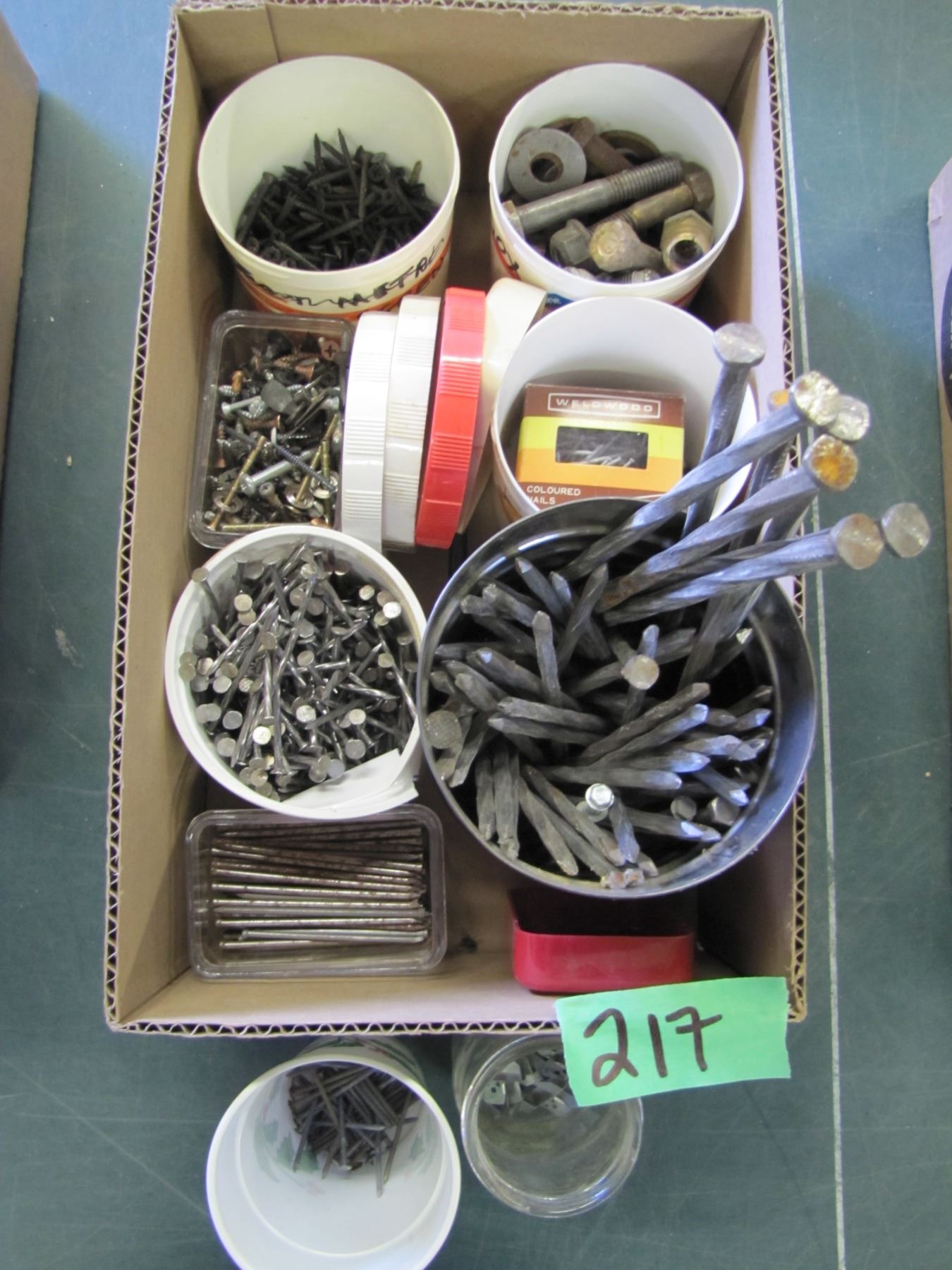 box of assorted nails and screws