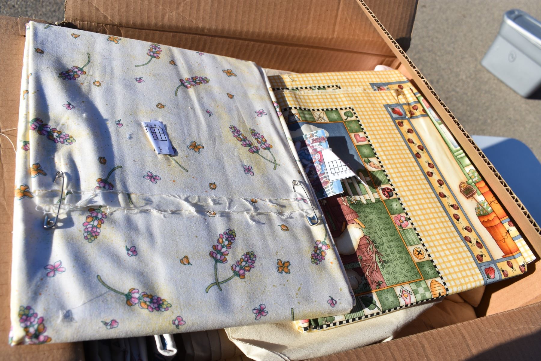 box of quilting material/fabric