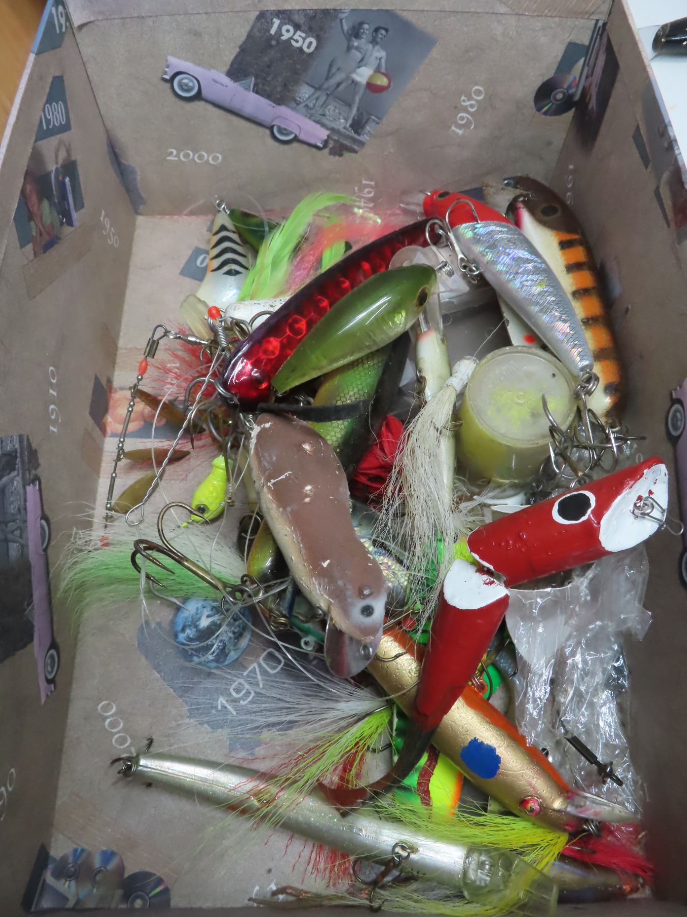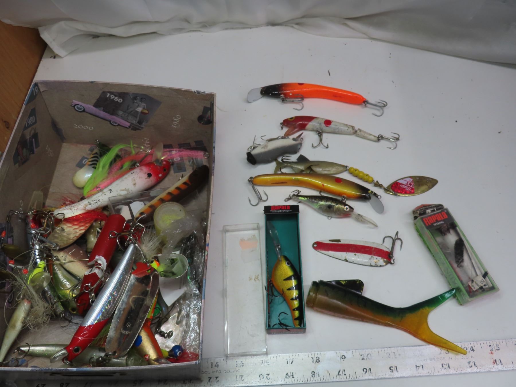 box of rapala and assorted lures