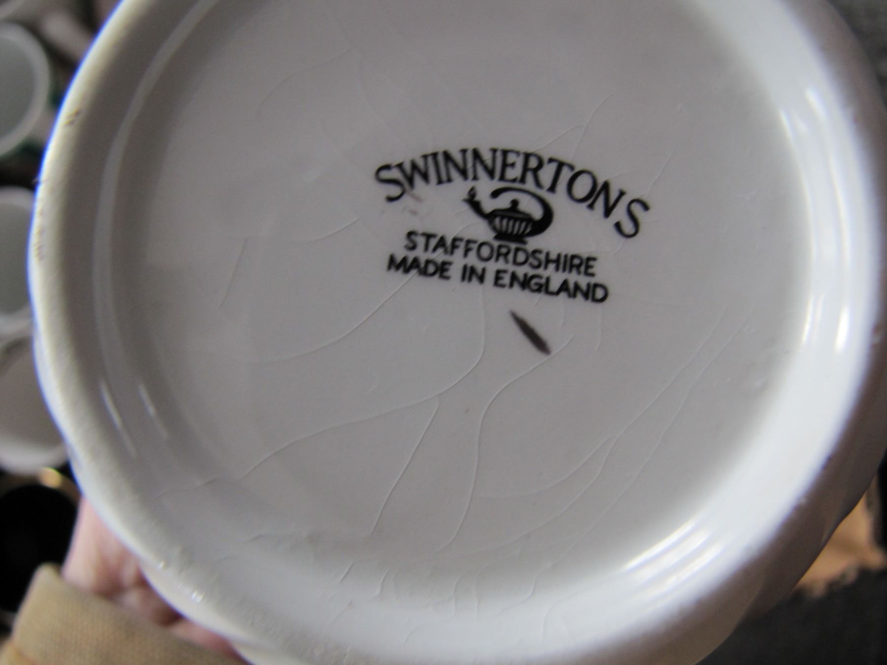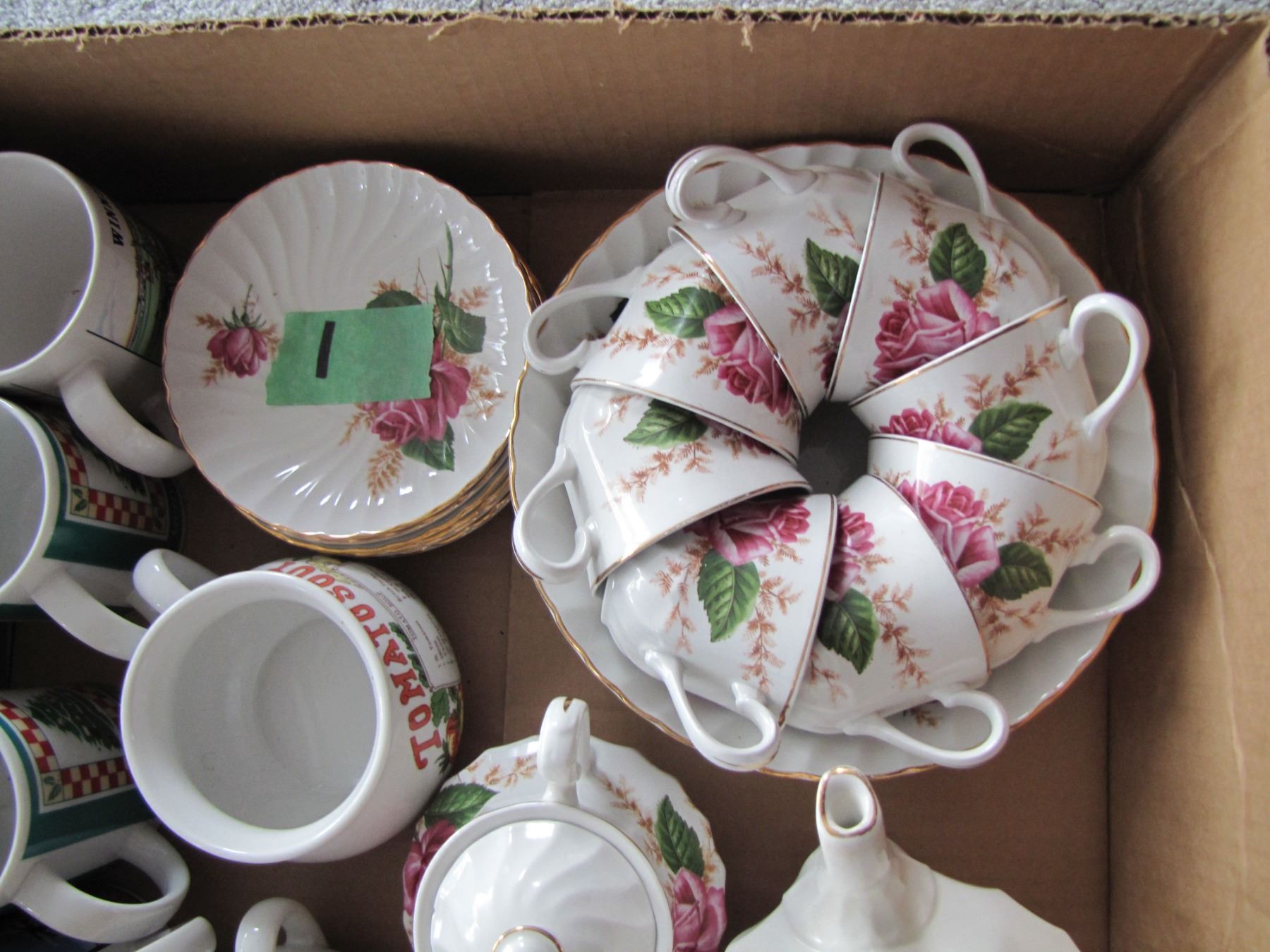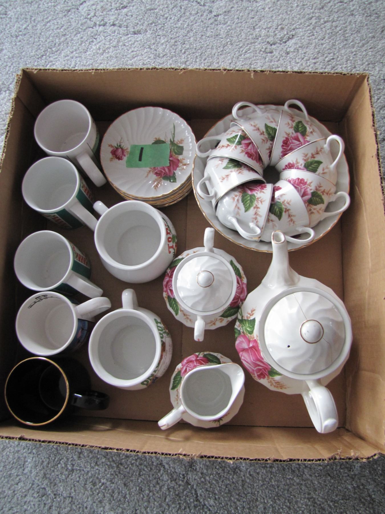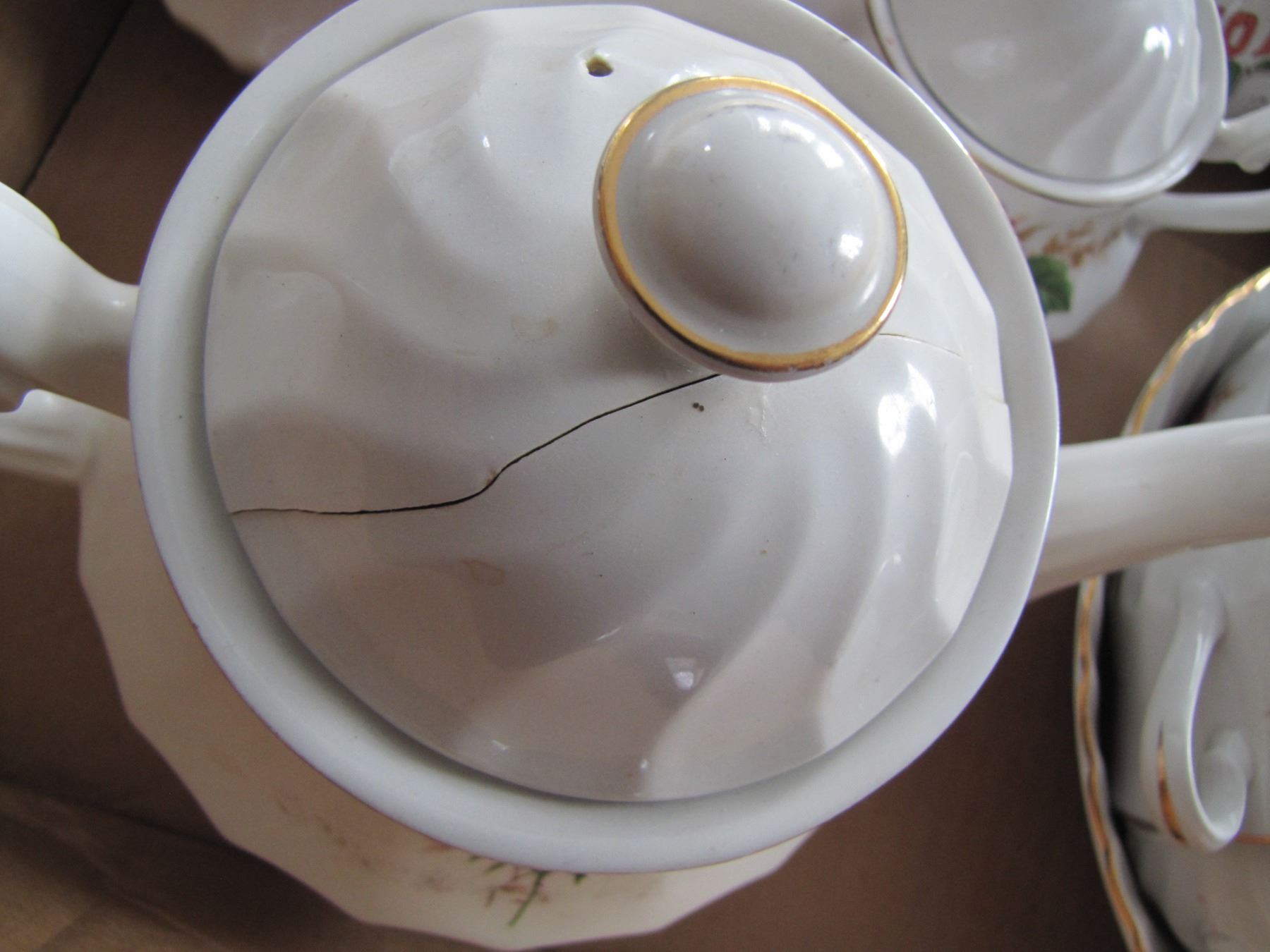 box of swinnertons teapot with cracked lid cups and saucers e t c