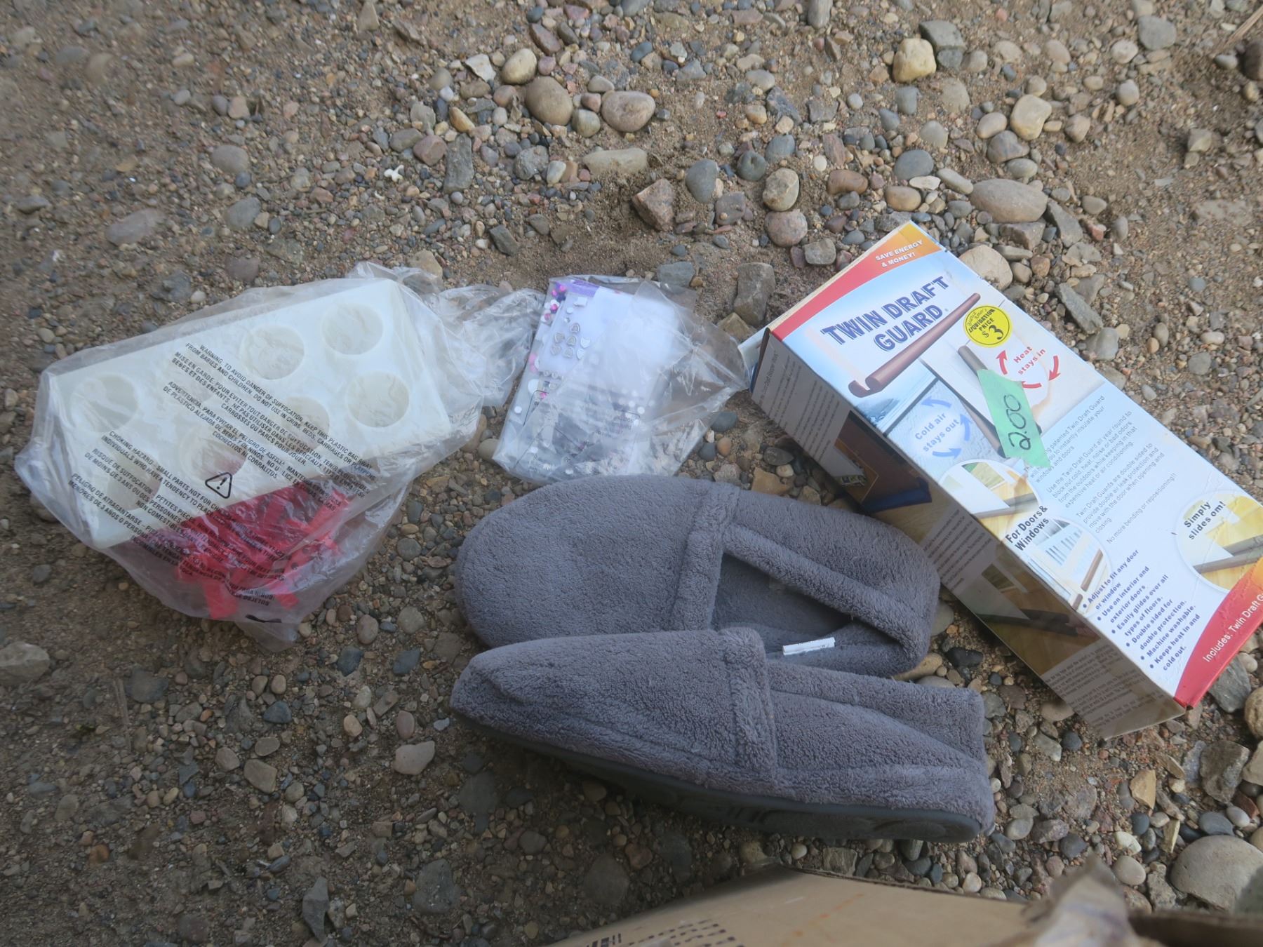 box with slippers, draft quard, popsickle trays, etc