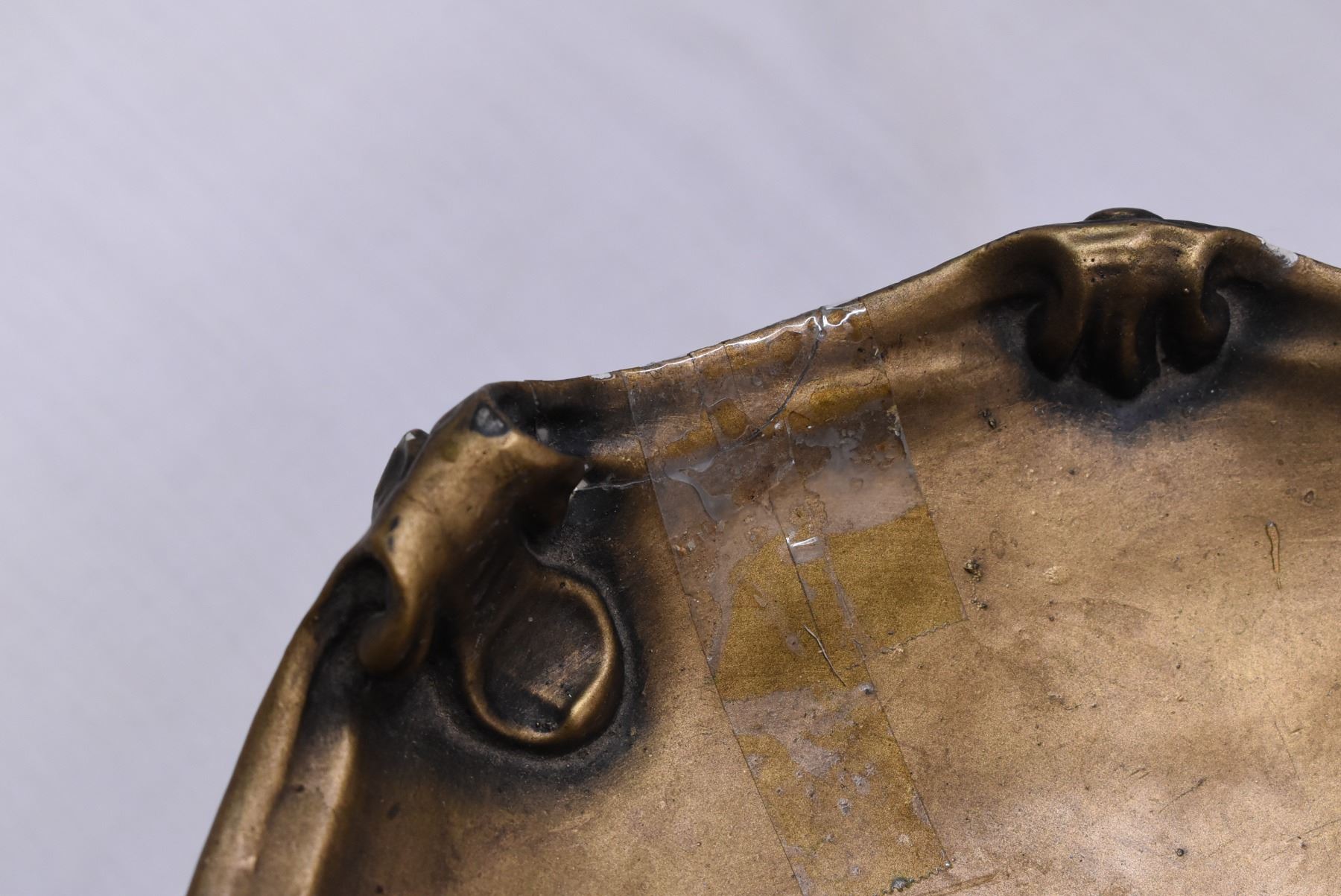 brass colored serving tray with candlesticks