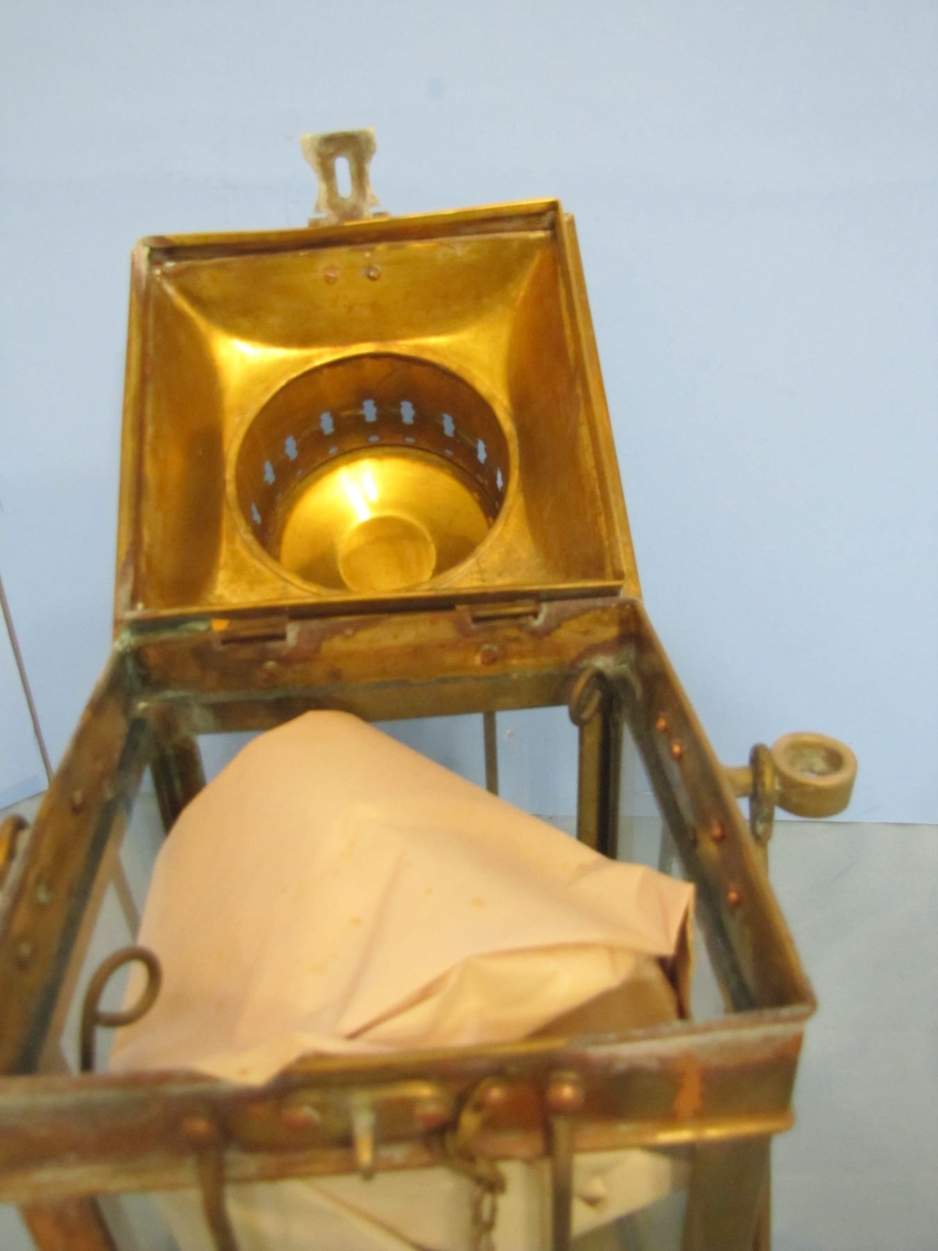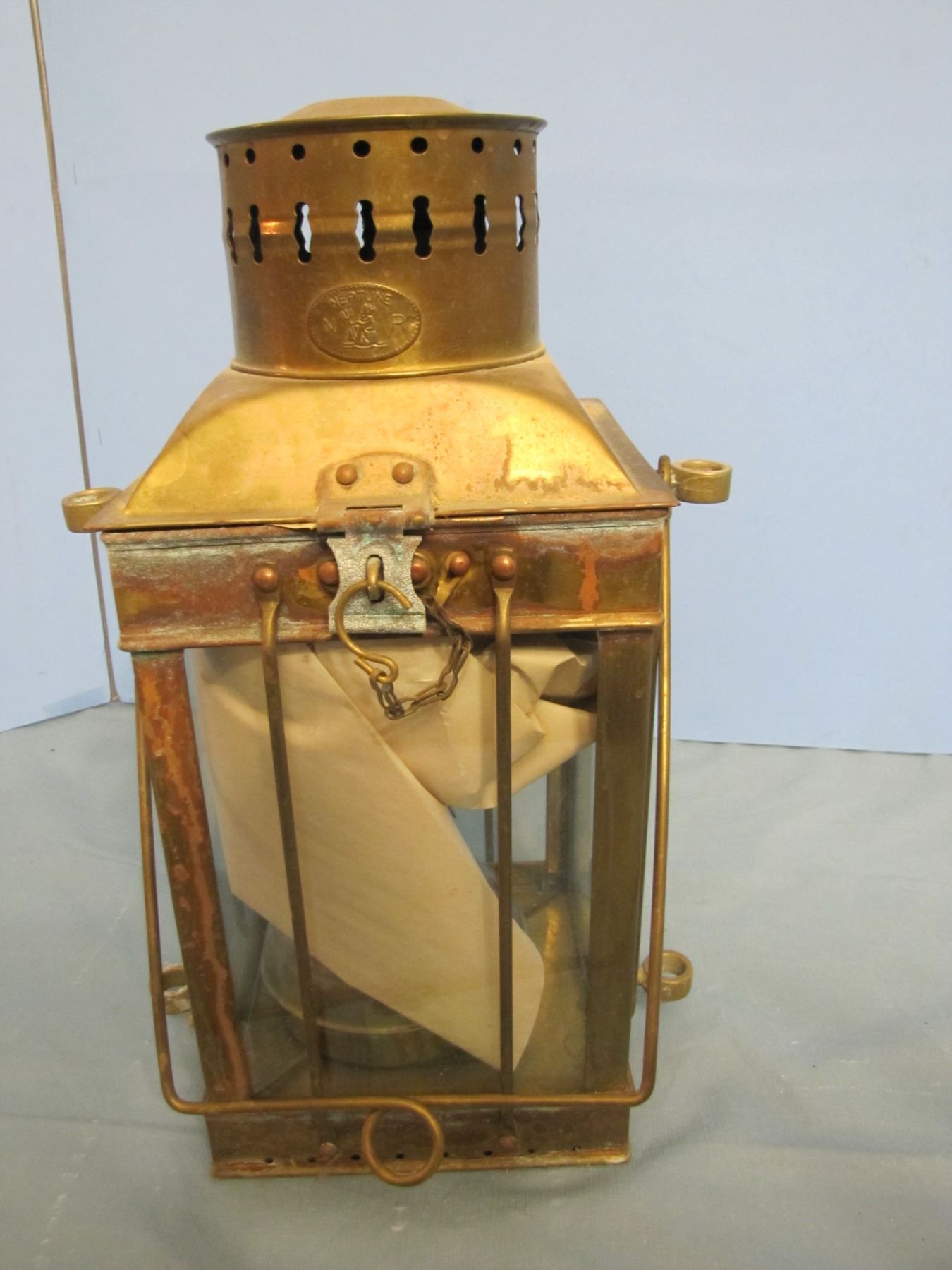 brass hurricane style lantern - marked Neptune