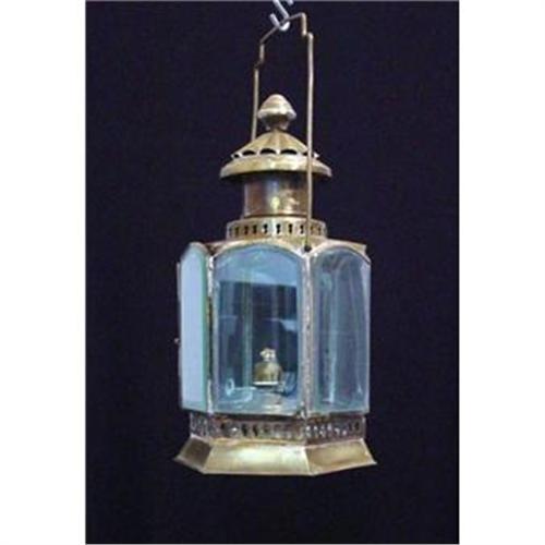 </font></strong>c.1900 Hextagonal brass oil lanterrn with beveled glass .</font>