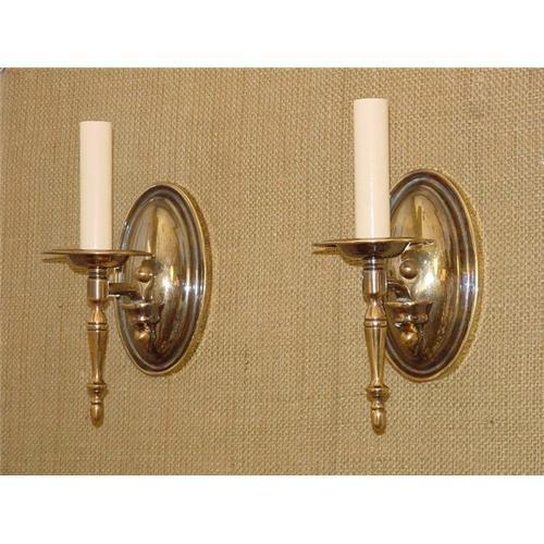 Circa 1930 pair of single light brass sconces ,rewired end ready to install.
