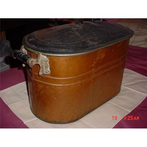 This is a copper broiler, with two handles and a lid. The handles of the broiler have been soldered, but are very solid and strong. This could be an interesting planter and/or a good conversation piece using it as a cooler containing iced down drinks.