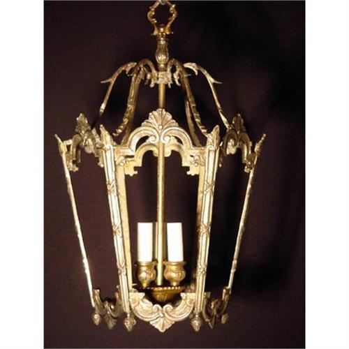Made in circa 1930 bronze lantern height 28" width 12" restored .