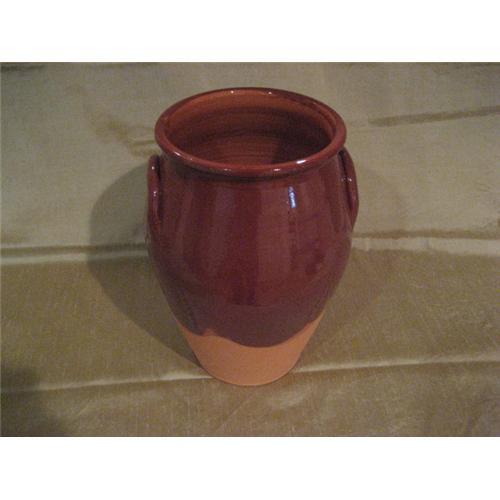 wonderful brownish red glazed earthen ware pot with two mock handles on the side. great for lamp, but also glazed on the inside so useful for holding liqueds. signed and dated by artist. have two that are similar but am selling seperately.