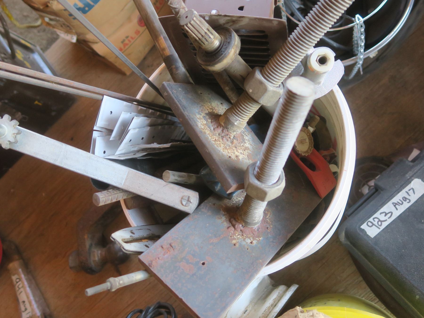 bucket of steal and assorted hardware
