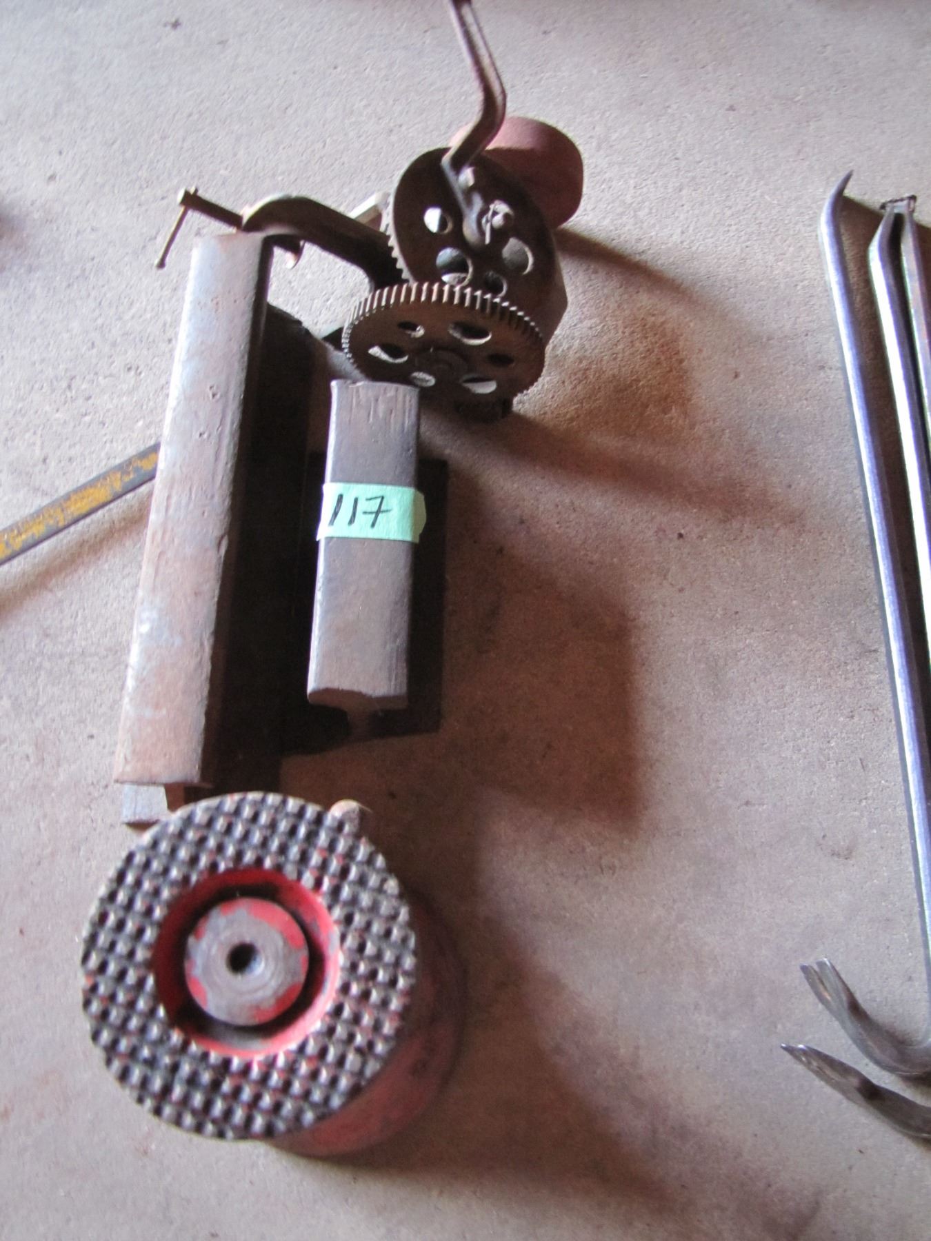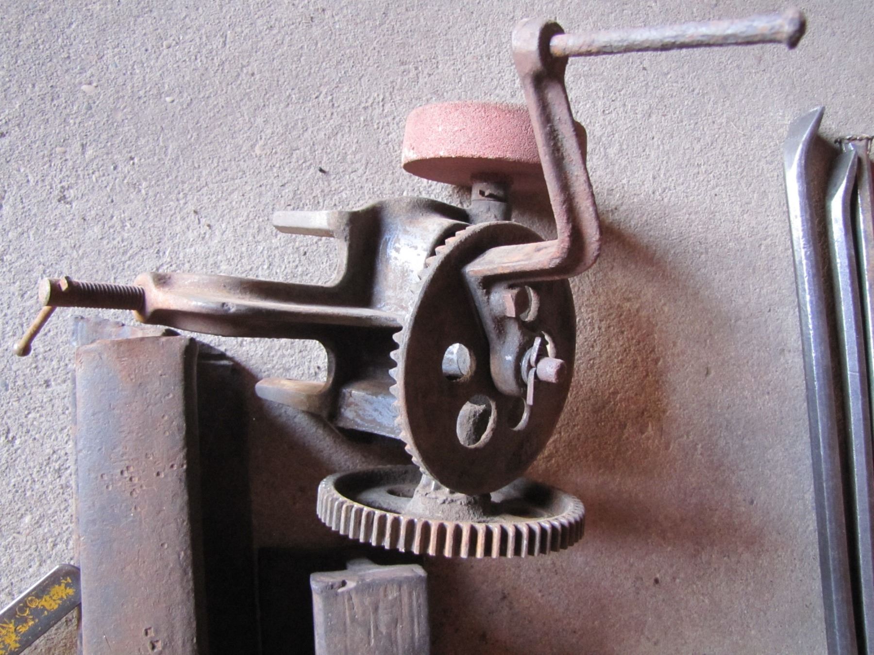 building Jack, two small pieces of Railway iron, sickle sharpener