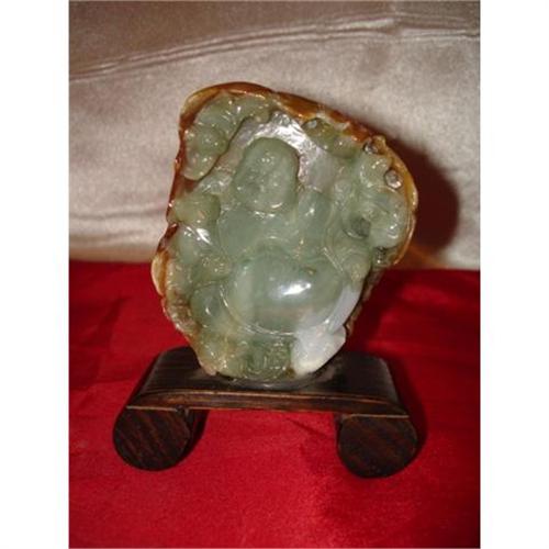 Beautifuly crafted happy buhhda with greenish jadeite and