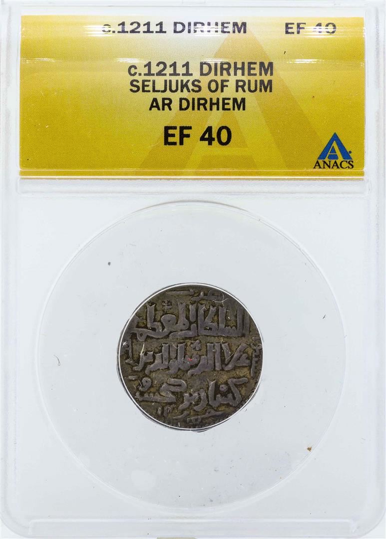 One c.1211 Seljuks Dirhem Coin ANACS EF40. ANACS Certified.