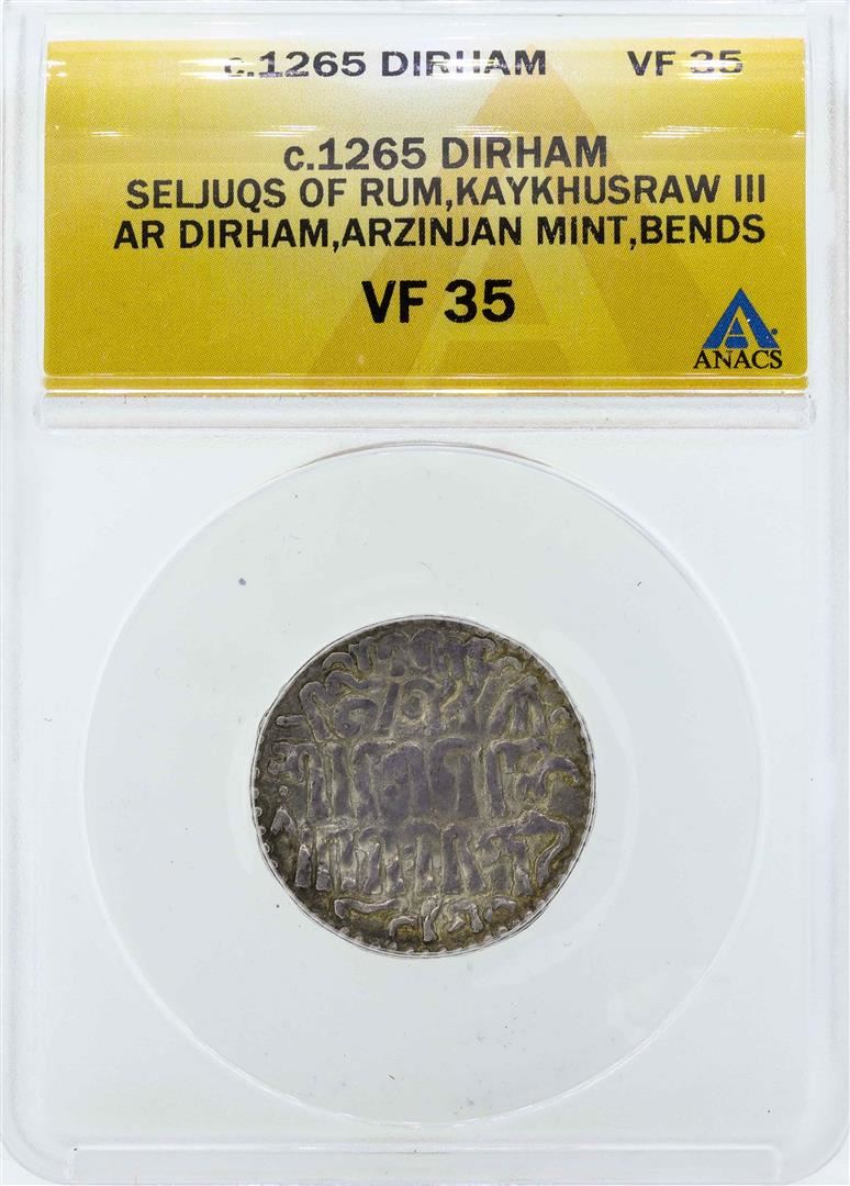 One c.1265 Seljuqs of Rum Dirham Coin ANACS VF35. ANACS Appraised.