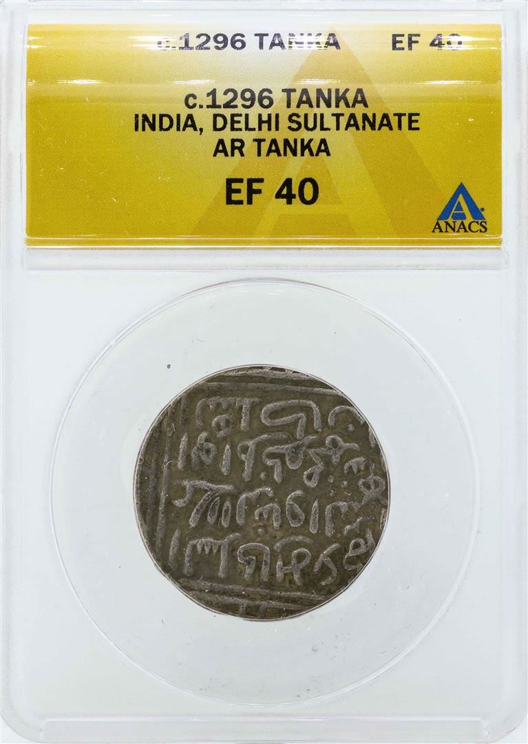 One c.1296 India Tanka Delhi Sultanate Coin ANACS EF40. ANACS Appraised.