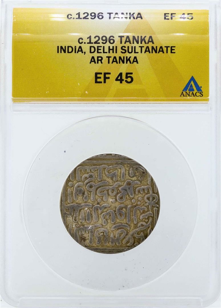 One c.1296 India Tanka Delhi Sultanate Coin ANACS EF45. ANACS Certified.