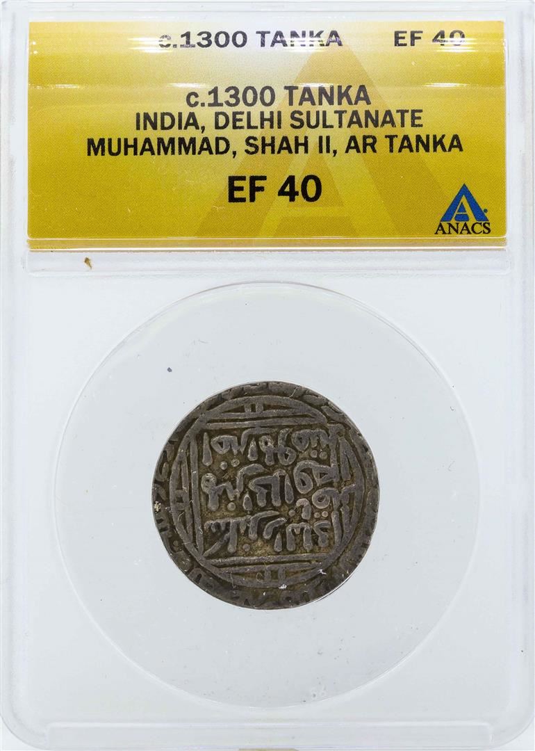 One c.1300 India Tonka Delhi Sultanate Coin ANACS EF40. ANACS Certified.