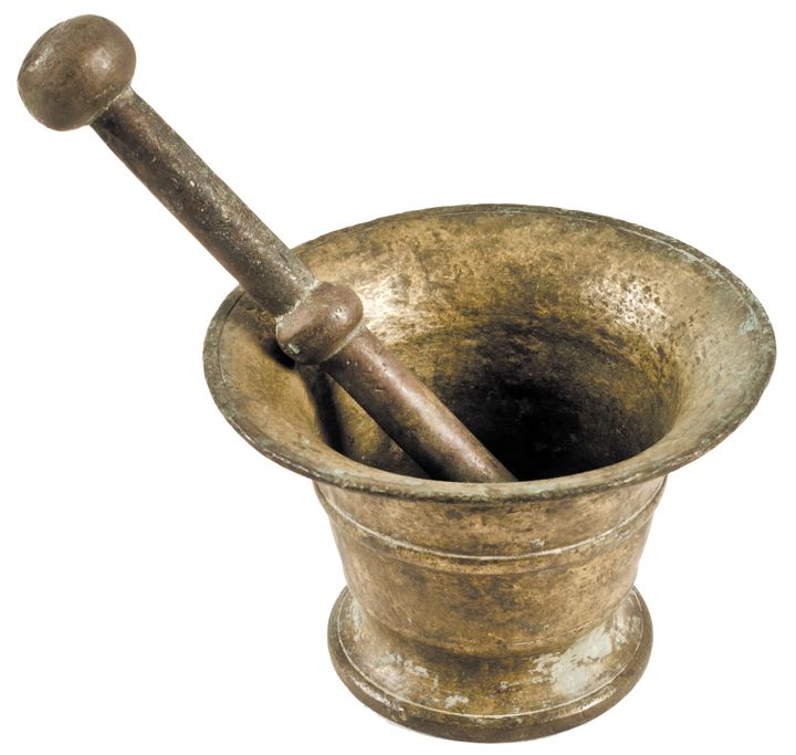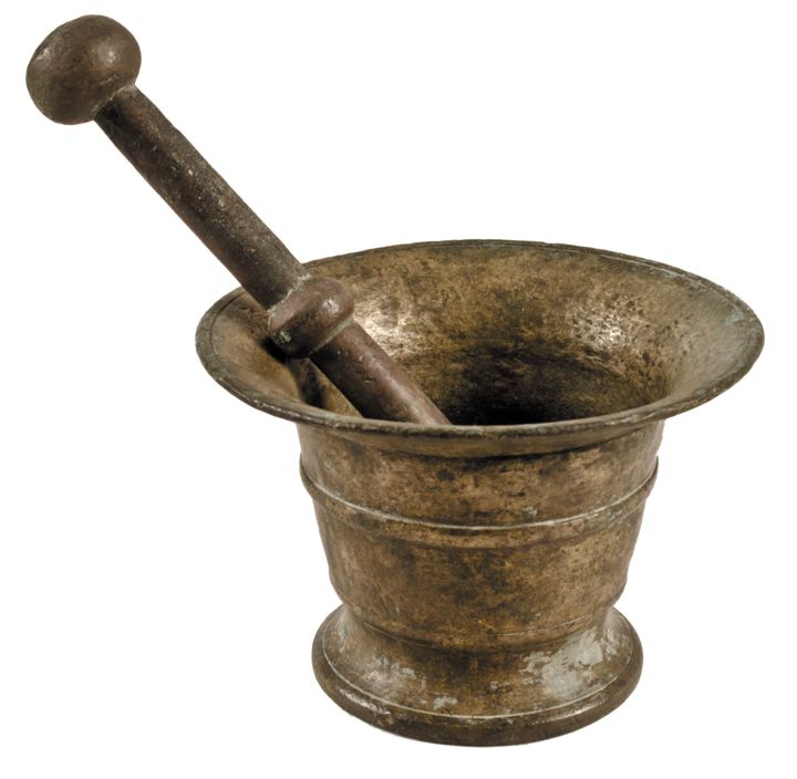 Early Antique Dutch Solid Brass Apothecary Mortar Pestle