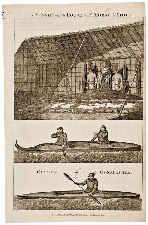 3. The Inside of the House in the Morai, in Atooi / Canoes of the Oonalashka;