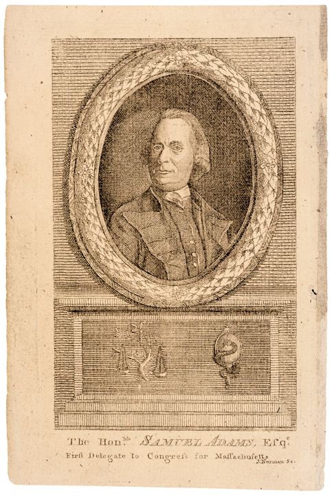 c. 1781 Engraving: “The Hon’ble. SAMUEL ADAMS Esqr., First Delegate to Congress for Massachusetts”, by “J. Norman, Sc.”, Very Fine.