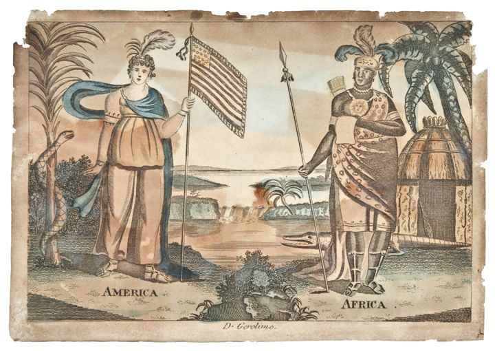 Hand-Colored Allegorical Print “AMERICA” & “AFRICA”