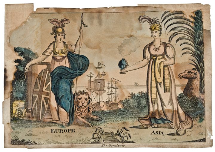 “EUROPE” and “ASIA” Hand-Colored Allegorical Print