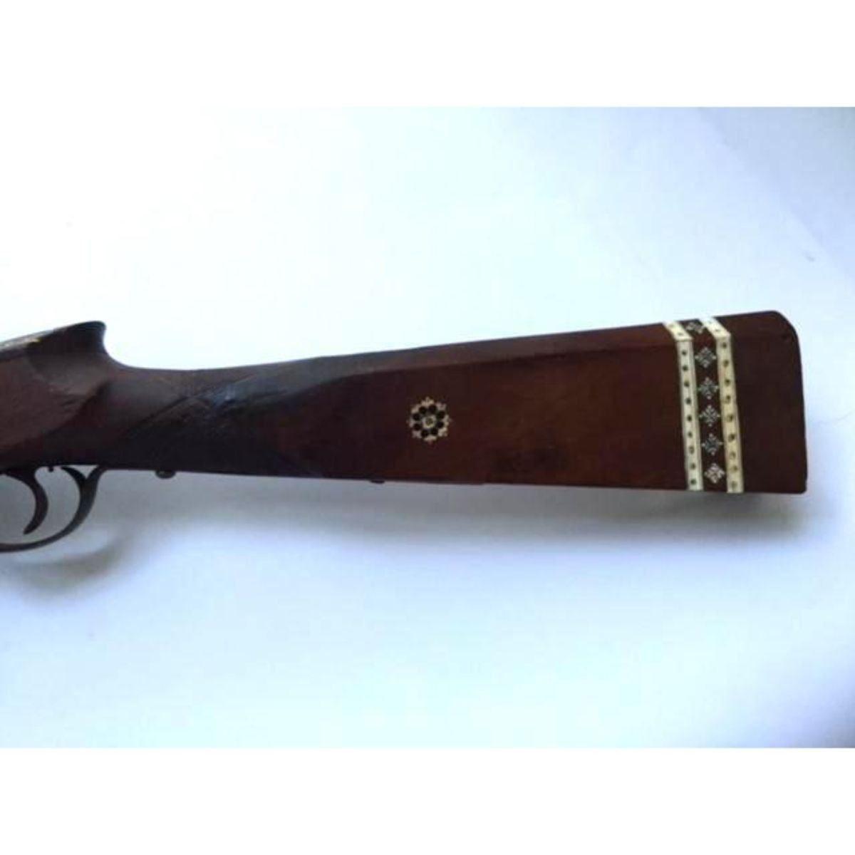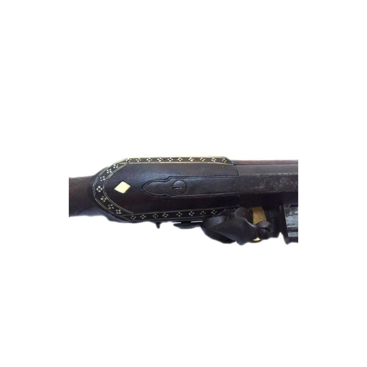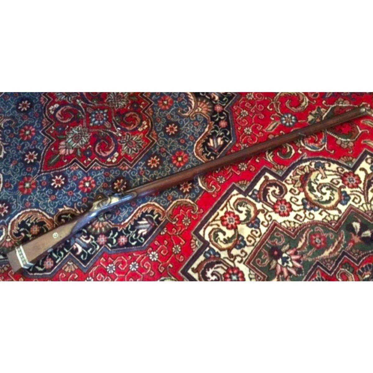 .700 Flintlock Rifle, c.1790 with 41" full stocked part round barrel/ octagonal at the breach, engraved to the top flat "Kohloi Lothe Preusische Garde Corps". Steel ramrod & sling swivels. Steel lock with gold pan &engraved with the name "Moore". Checkered grip. Intricate shell & bone rosettes on the walnut stock & bands around butt. 56" length overall.