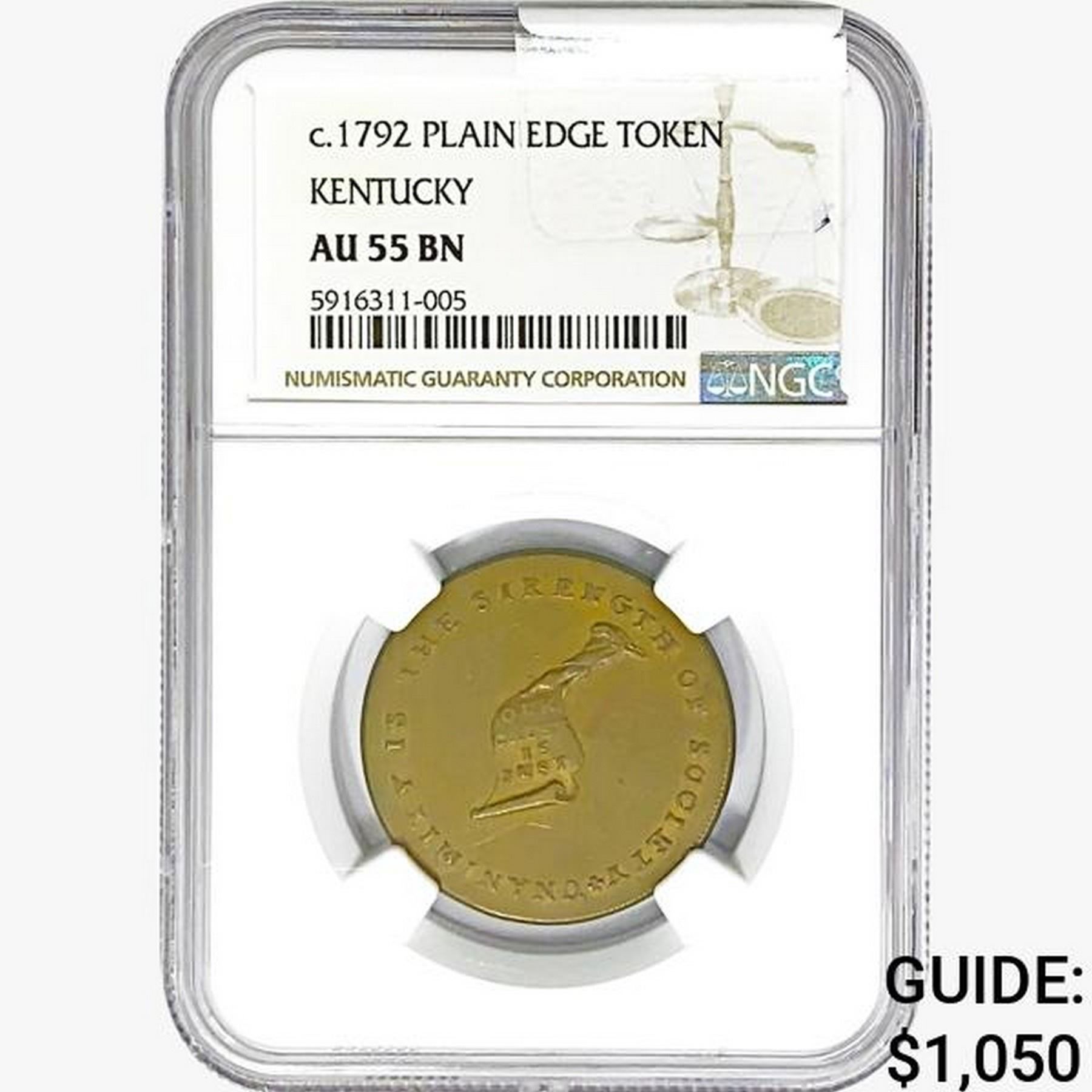 c.1792 Token Kentucky Plain Edge NGC AU55 BN
