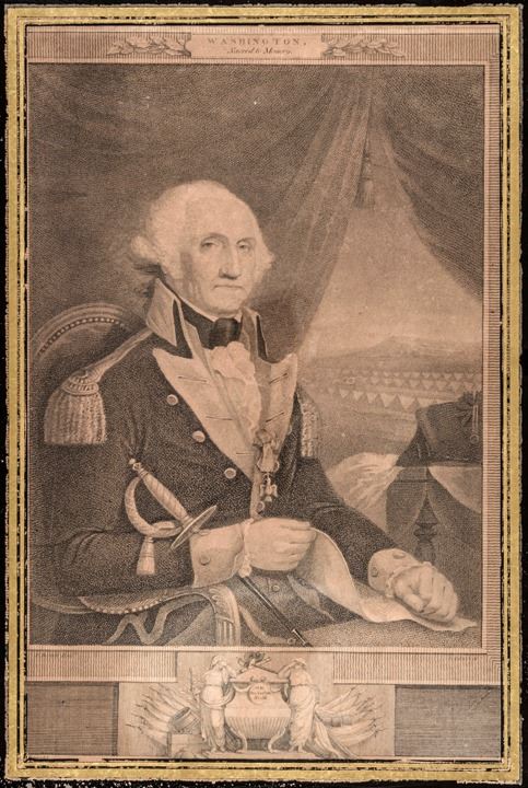 c. 1800 Death of Washington Mourning Period, Engraving of George Washington, Reworked by Barralet After the D. Edwin and F. Bartoli Engraving, Choice Very Fine.