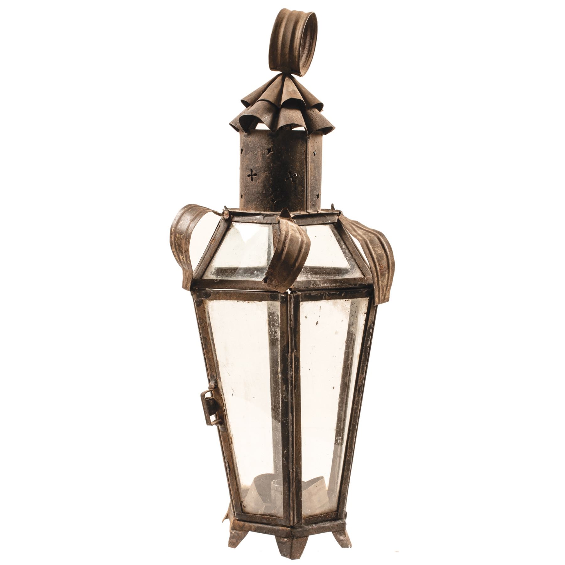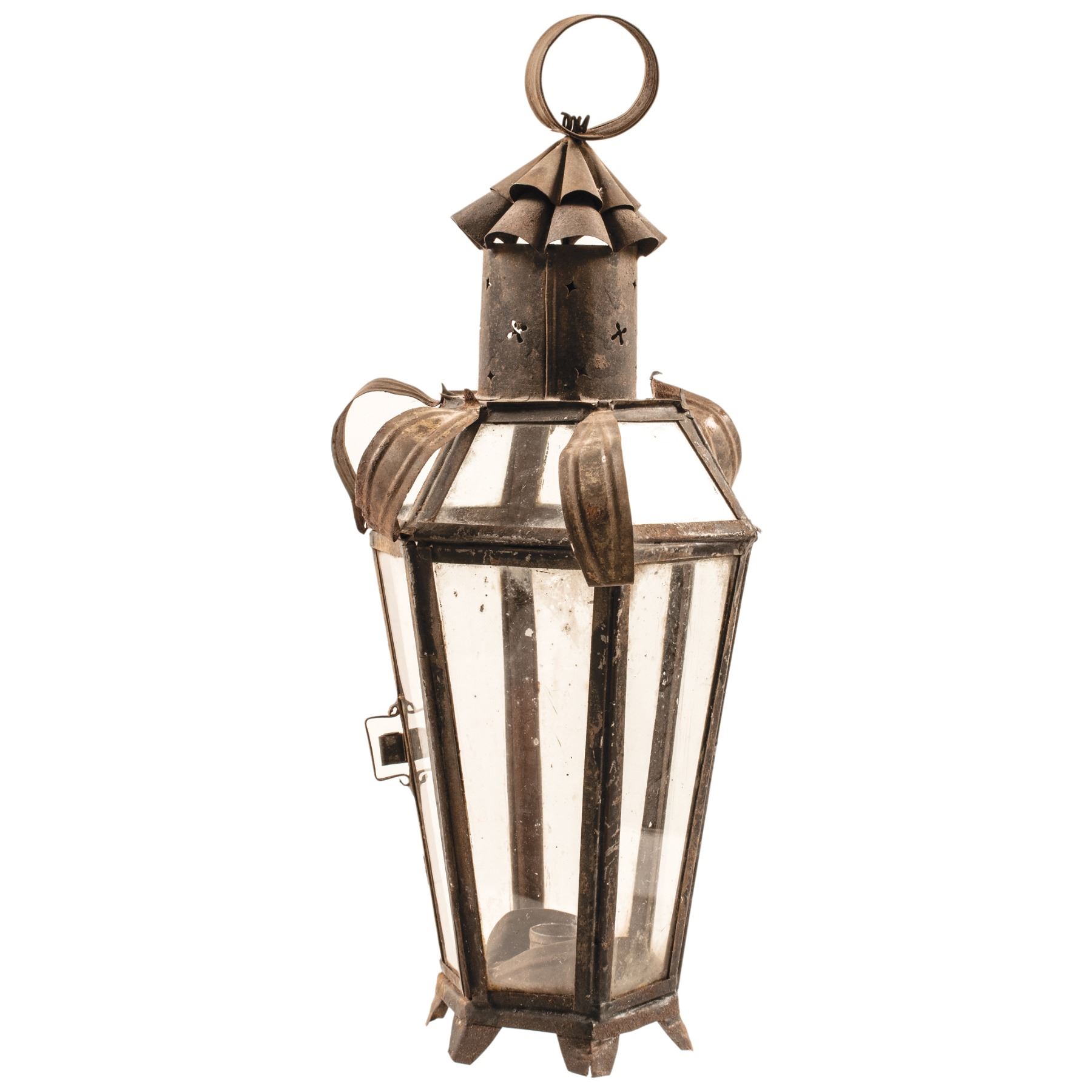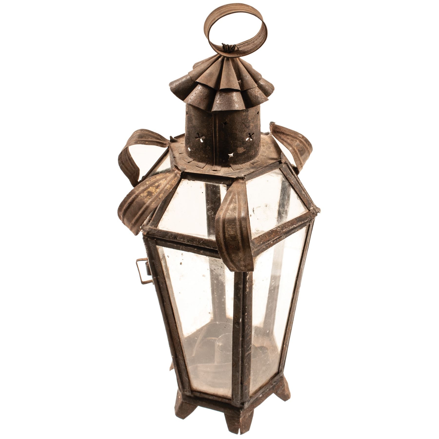 Ornate Hand-crafted Six-Sided Panel Tin Candle Lantern