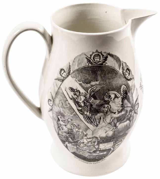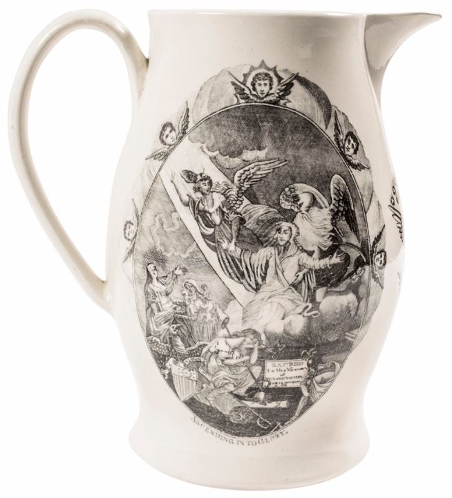 Museum Quality George Washington “Ascending In To Glory” Large Size Historical Liverpool Creamware Pitcher