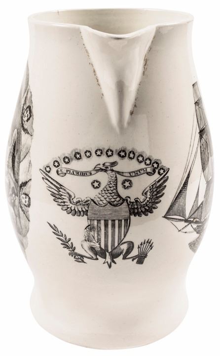 c 1800 George Washington Historical Liverpool Creamware Pitcher, US Ship + Eagle