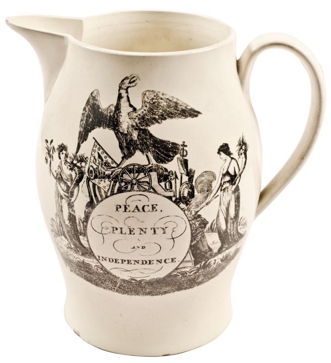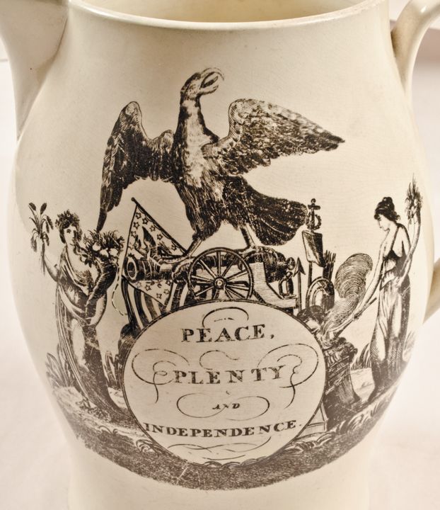 Historic Liverpool Creamware Pitcher “Washington in Glory” and “Peace, Plenty And Independence” Transfers