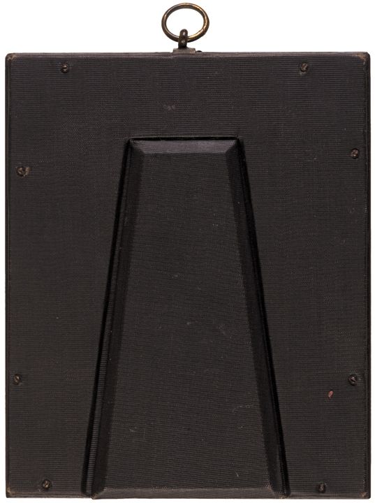 This is a beautiful quality, original c. 1800 Hand-painted Oval Miniature, in Oil, showing the portrait of an American Revolutionary War Lieutenant Colonel. It is executed with outstanding detail, measuring 3.5" x 2.75" and is period inscribed in brown ink on the blank verso; “Lieutenant Colonel Elliot O. H. 1800”. It is certainly worthy of additional research to fully identify this historic figure. This original painting is on thin white standard period material, housed in an antique black painted early 19th Century wooden frame with bronze accents and hanger at top, measuring 6.25" x 5." and is in very good condition having only a few edge chips. An additional back has been attached to allow for a back stand, which is of early 20th Century vintage. This is a great piece of early Americana that is gorgeous and ready for display. Ex: Sotheby’s Auction, New York (unknown date of sale), having their generic small round paper lot identification sticker on its frame back.