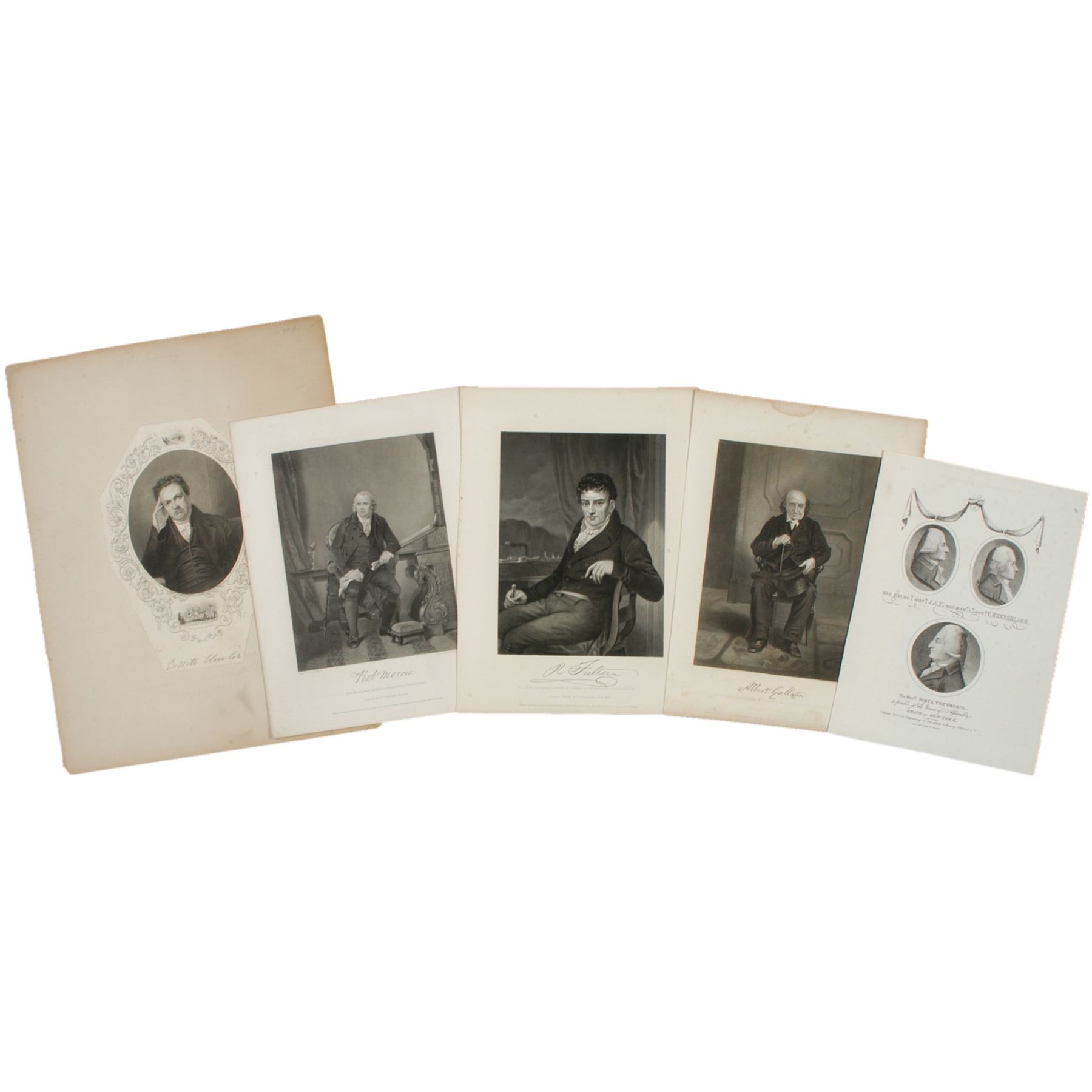 c. 1800s Lot of 5 Prominent Americans Prints: Robert Fulton + Robert Morris